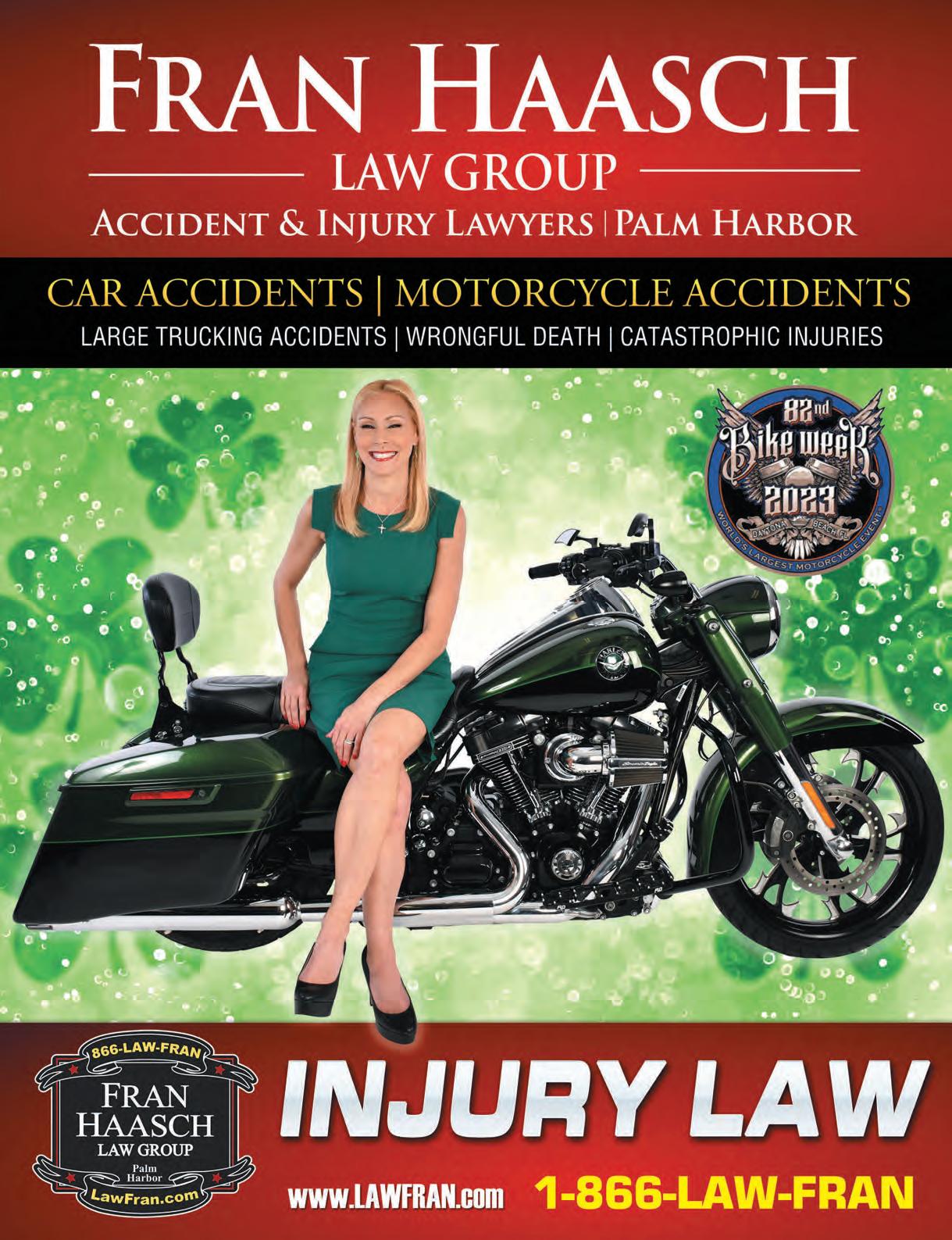 call Attorney Fran Haasch - the attorney who has over 20 year’s experience with motorcycle accidents; is an advocate for helping bikers navigate the law, healthcare issues, insurance claims and the repair or replacement of a motorcycle. Fran cares and fights for bikers’ rights every day and also supports the biker community by giving back to charity and community events all