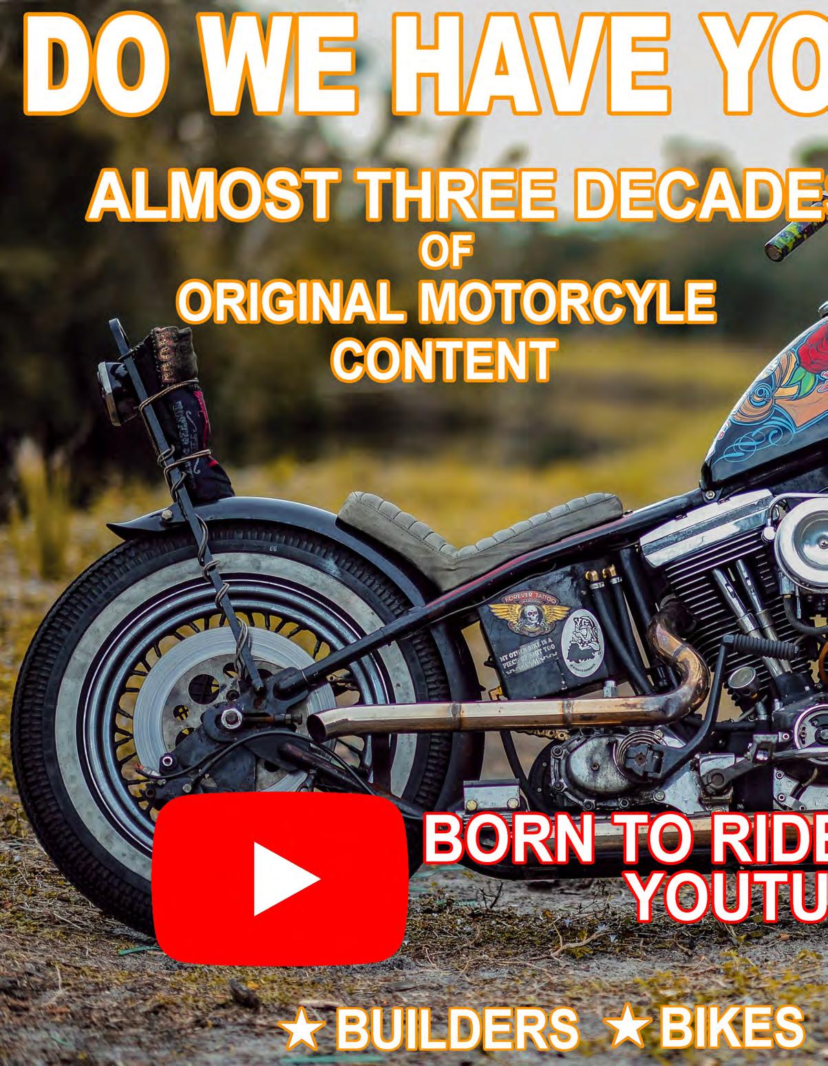 Don’t forget to support all the excellent advertisers who keep Born To Ride on the streets. Let them know you support Born To Ride and remember to join our Born To Ride Facebook page and YouTube Channel at borntoridetvmagazine. Be a part of two-wheeled history right here at Born To Ride!