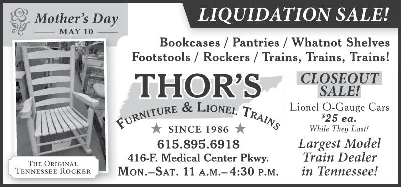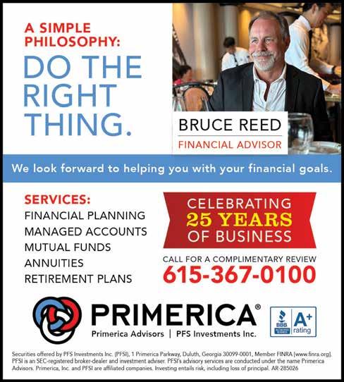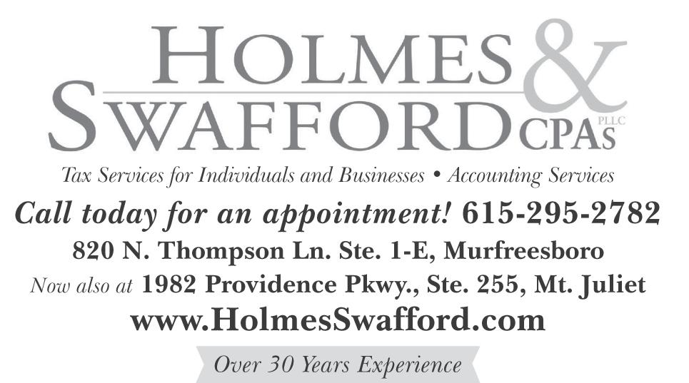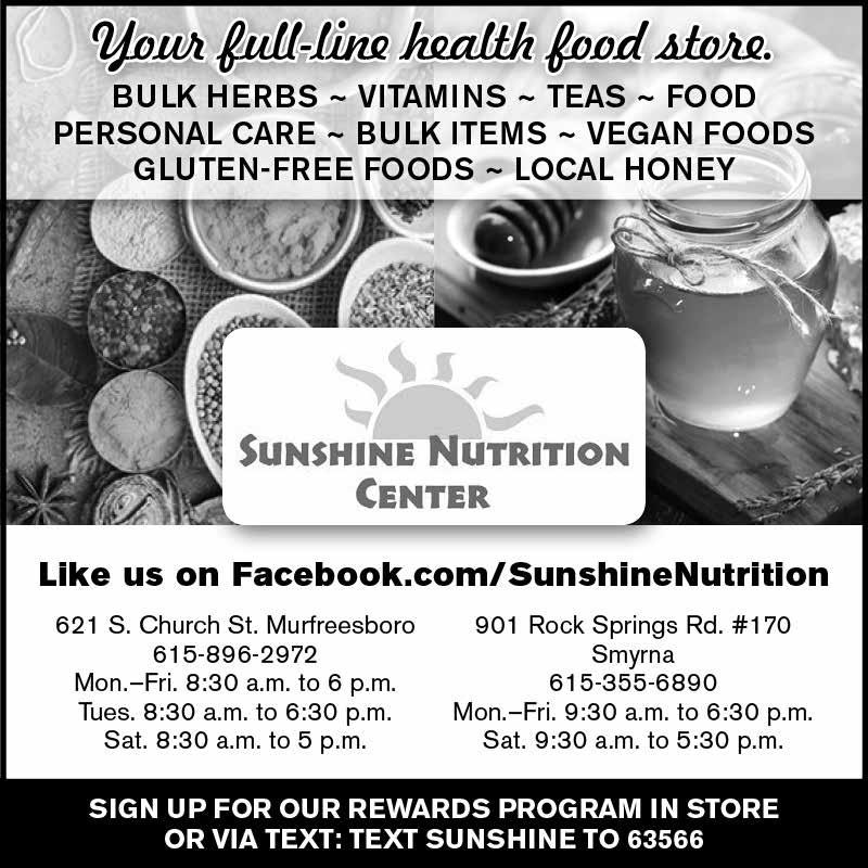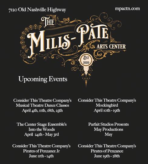 holy week At st. MArk’s Holy Thursday at St. Mark’s United Methodist Church (1267 N. Rutherford Blvd.) will be observed on Thursday, April 2 at 5 p.m. The church family meal (pork chops with orzo pasta, sauteed spinach, a salad bar, and lemon blueberry ricotta cake) begins at 6 p.m. Holy Thursday worship will be in the spirit of the Last Supper, with Holy Communion and the opportunity for foot washing. On Easter Sunday, April 5, the children’s Easter egg hunt will take place at 9:15 a.m. in the front yard, followed by a 10:30 a.m. Easter worship service, with the children’s butterfly parade and Easter selections from Handel’s Messiah shared by the chancel choir and orchestra following. For more information, visit stmarkstn.org.