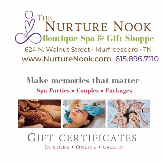 Jennifer durand is the owner and operator of The Nurture Nook day Spa & gift Shoppe. Call 615896-7110 or visit facebook.com/nurturenookdayspa or nurturenook.com for more.