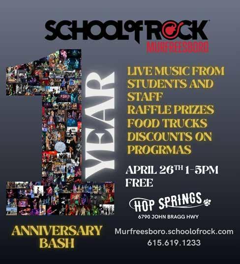 cAleNdAr Spring Festival, cookie decorating & Easter Bunny photos, MTSU Alumni Showcase, Butterfly Festival, Project ReStyle, Pioneer Days, Special Olympic Games, JazzFest, Boro Beach Party, Boro BBQ Festival, Singo, and more!
