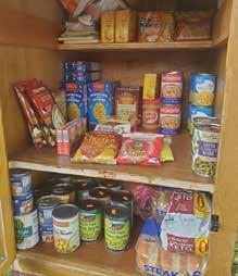 Community members stock dozens of boxes to help those in need of food.