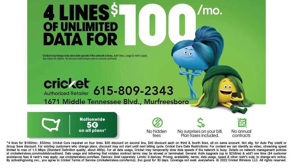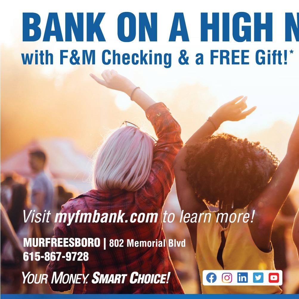 Copyright © 2023, The Murfreesboro Pulse 714 W. Main St., #208, Murfreesboro, TN 37129. Proudly owned, operated and published the first Thursday of each month by the Mayo family; printed by Franklin Web Printing Co. The Pulse is a free publication funded by advertisers. Views expressed in the Pulse do not necessarily reflect the views of the publishers. ISSN: 1940-378X