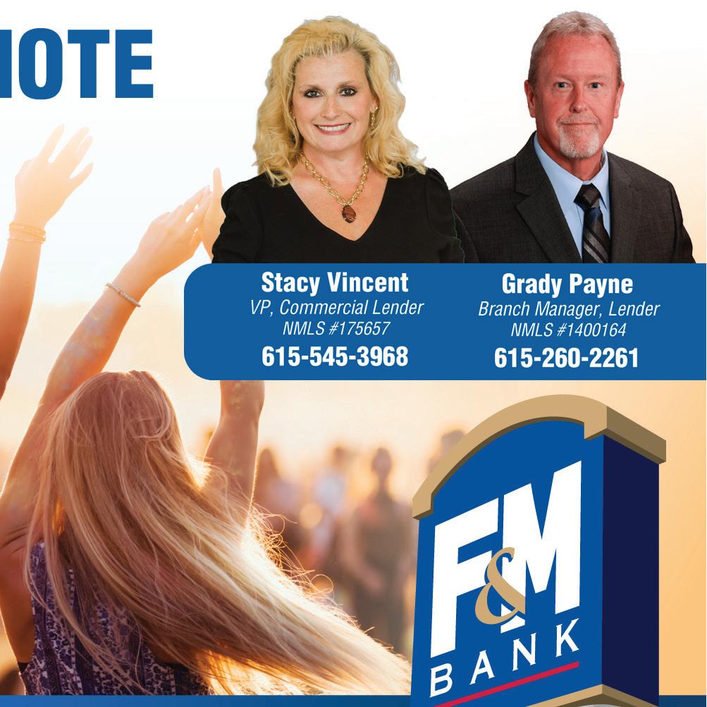 CALL TEAM BORO HOMES FOR ALL OF YOUR REAL ESTATE NEEDS! Meredith Thomas TNLIC#333682 615.210.4767 Bill Wilson TNLIC#275638 615.406.5872 1535 W. Northfield Blvd. Suite 7 Murfreesboro, TN 37129 615.896.4040 teamboroabc@gmail.com | www.teamborohomes.com The Thomas-Wilson Team 10% OFF for First-Time Color Clients with Felicia • Use Code 2021 732 Nissan Dr., Smyrna 615-267-3334 BOROPULSE.COM * FEBRUARY 2023 * 39