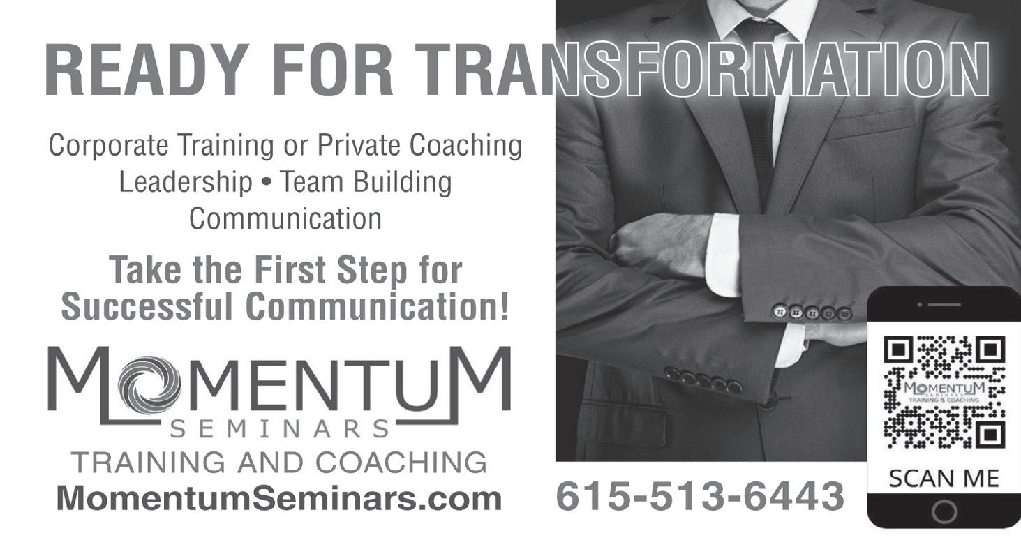 615.406.5872 1535 W. Northfield Blvd. Suite 7 Murfreesboro, TN 37129 615.896.4040 teamboroabc@gmail.com | www.teamborohomes.com The Thomas-Wilson Team 10% OFF for First-Time Color Clients with Felicia • Use Code 2021 732 Nissan Dr., Smyrna 615-267-3334