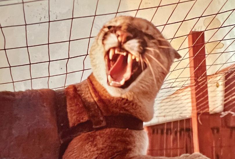 through a friend of his, he traveled to Cape Girardeau, Missouri, to an exotic animal sale. He first had to get a license to buy a mountain lion. By going through the proper channels, he bought this 5-to 8-week-old female cougar, or mountain lion, in 1982 and named her Muff. I asked him one time why he named her Muff and he asked, “Why not?”
