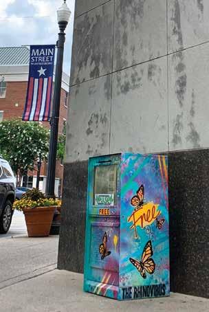 New Frizzell-Armes custom-painted Pulse newsbox placed by Whiskey Dix on Murfreesboro Public Square.
