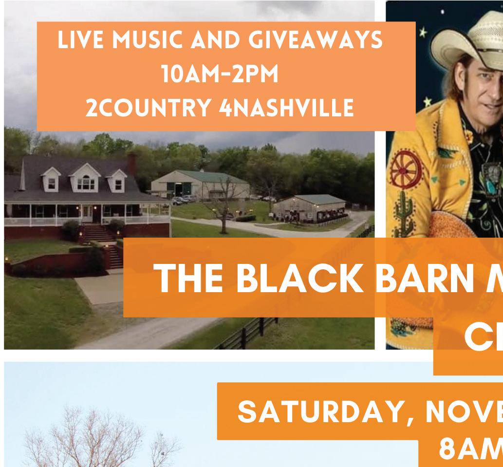 The Black Barn Market & Craft Sale is going to be a day of fun for the whole family from 8 a.m.–3 p.m. Saturday, Nov. 12, at Events at East 96 (9901 Lascassas Pk.). Shop over 50 vendors while listening to live music by 2Country 4Nashville who will be performing from 10 a.m.–2 p.m. Enjoy giveaways and live chainsaw carvings happening onsite. Food trucks are onsite and there will be plenty of sweets around. Children can have fun with the bounce house, face painting and the one and only mobile insect and reptile petting zoo. Admission and parking are free.