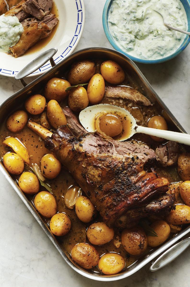 SLOW-ROASTED LEG OF LAMB WITH LEMON & BAY POTATOES