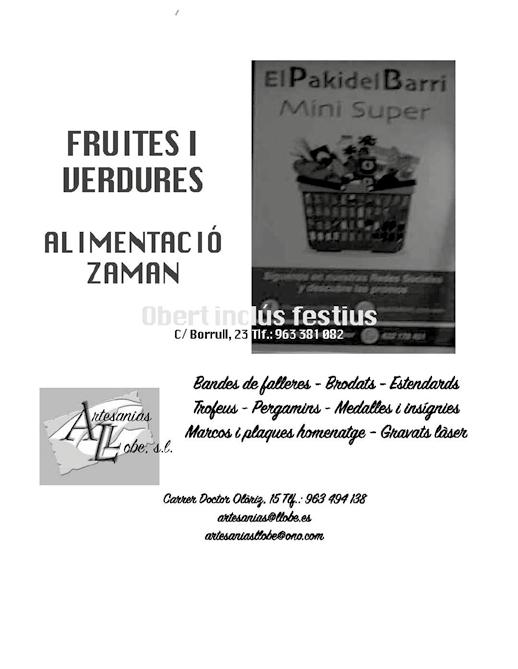 i alimentació Zaman, Artesania Llobe, Pescateria Germans Perona, Caixa Popular, Taller de tapisseria Grimalt, Carpe Diem