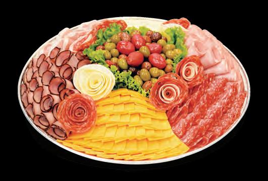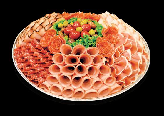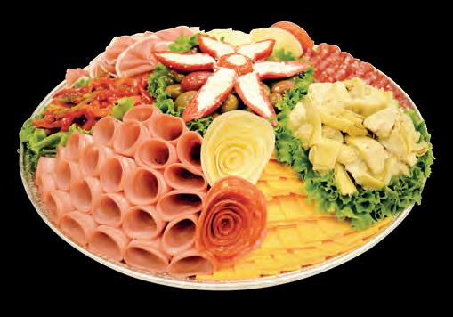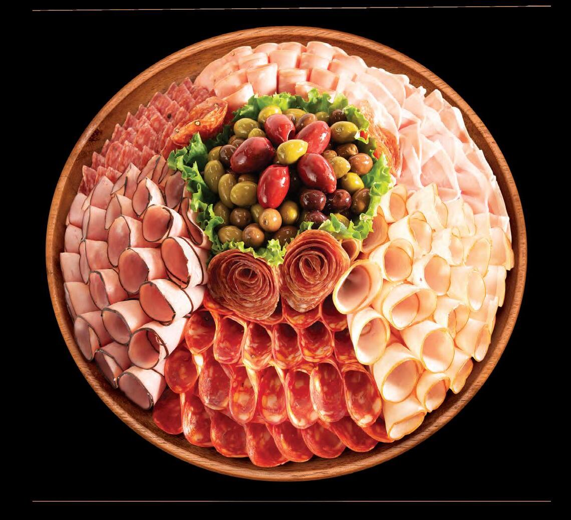 Black Forest Ham, Turkey, Salami, Prosciutto, Mortadella & Calabrese Salami with Olives in the Center.