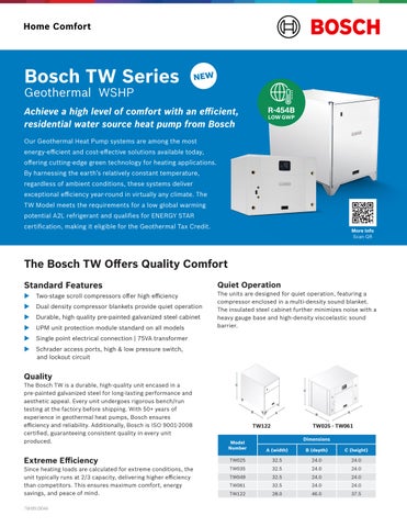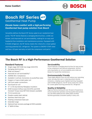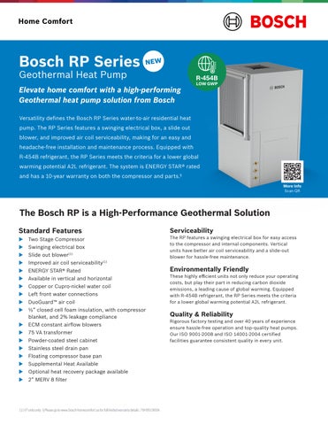 In North America, Bosch Home Comfort Group is a leading source of high-quality water heating and comfort heating systems. In particular, the company offers Bosch tankless, point-of-use, and heat pump electric water heaters, Buderus floor-standing and wall-hung boilers, FHP geothermal systems as well as controls and accessories for every product line. Bosch Home Comfort is committed to reinventing energy efficiency by offering smart products that fit together and work together as integrated systems that enhance the quality of your life in an ultra-efficient and environmentally friendly manner.