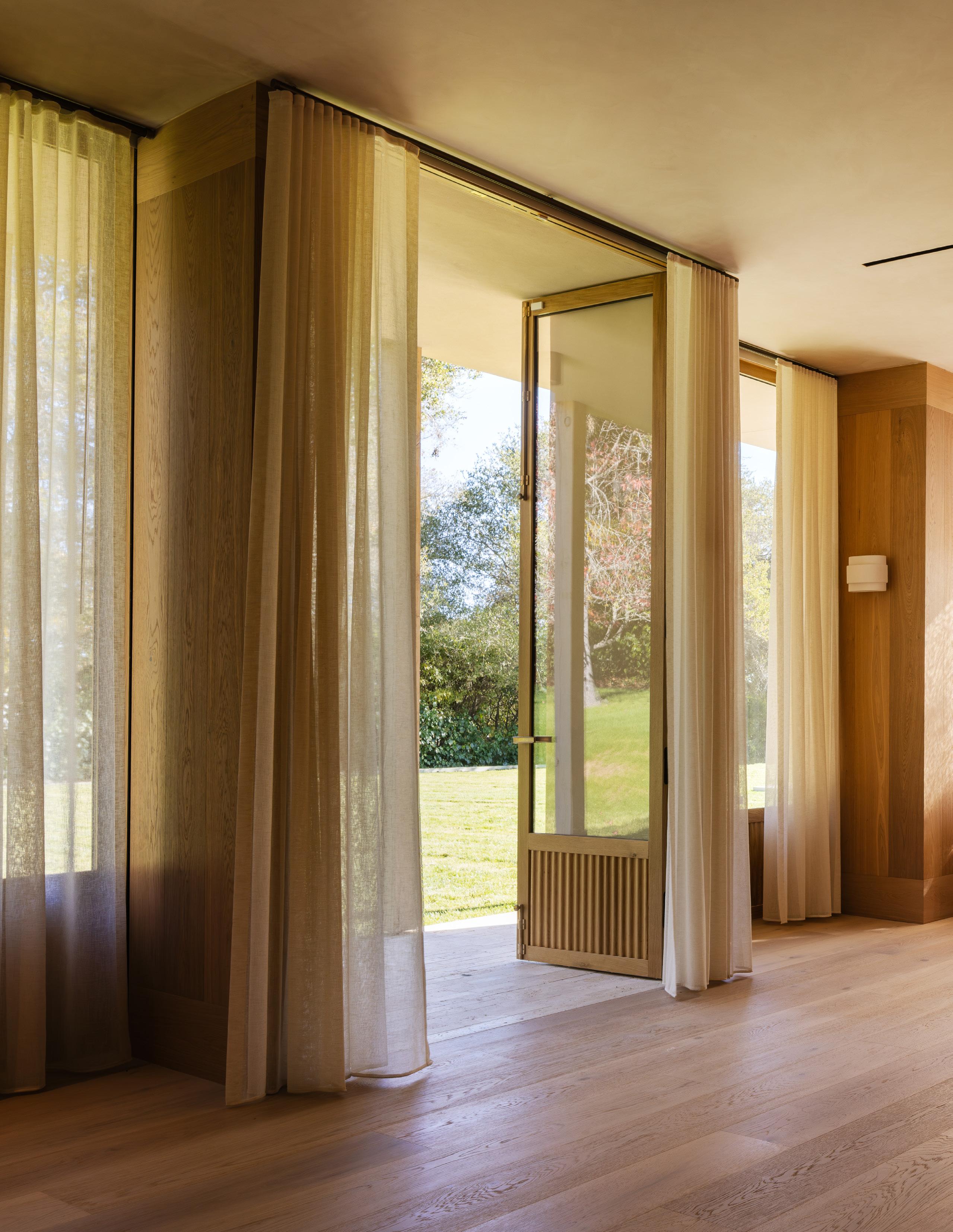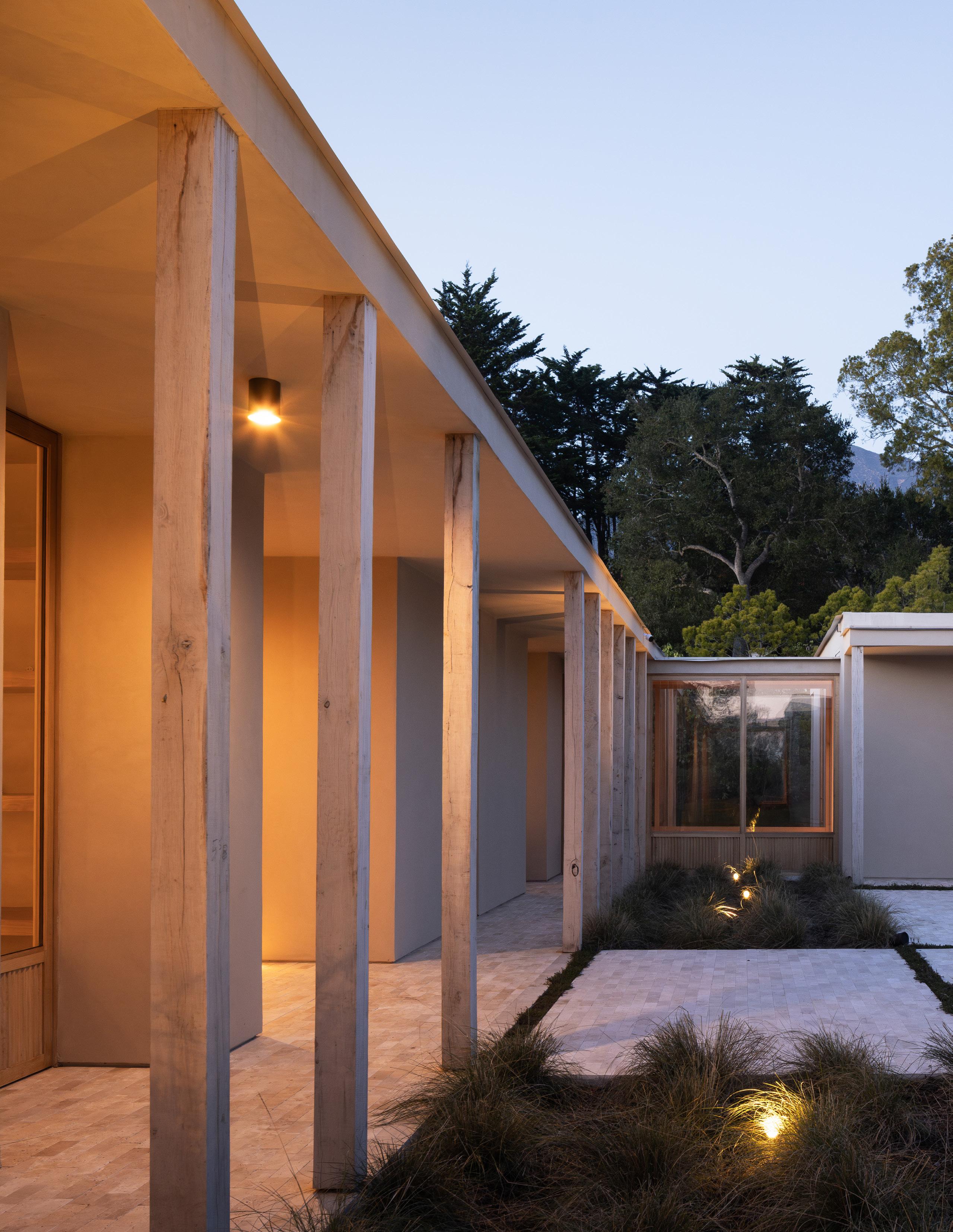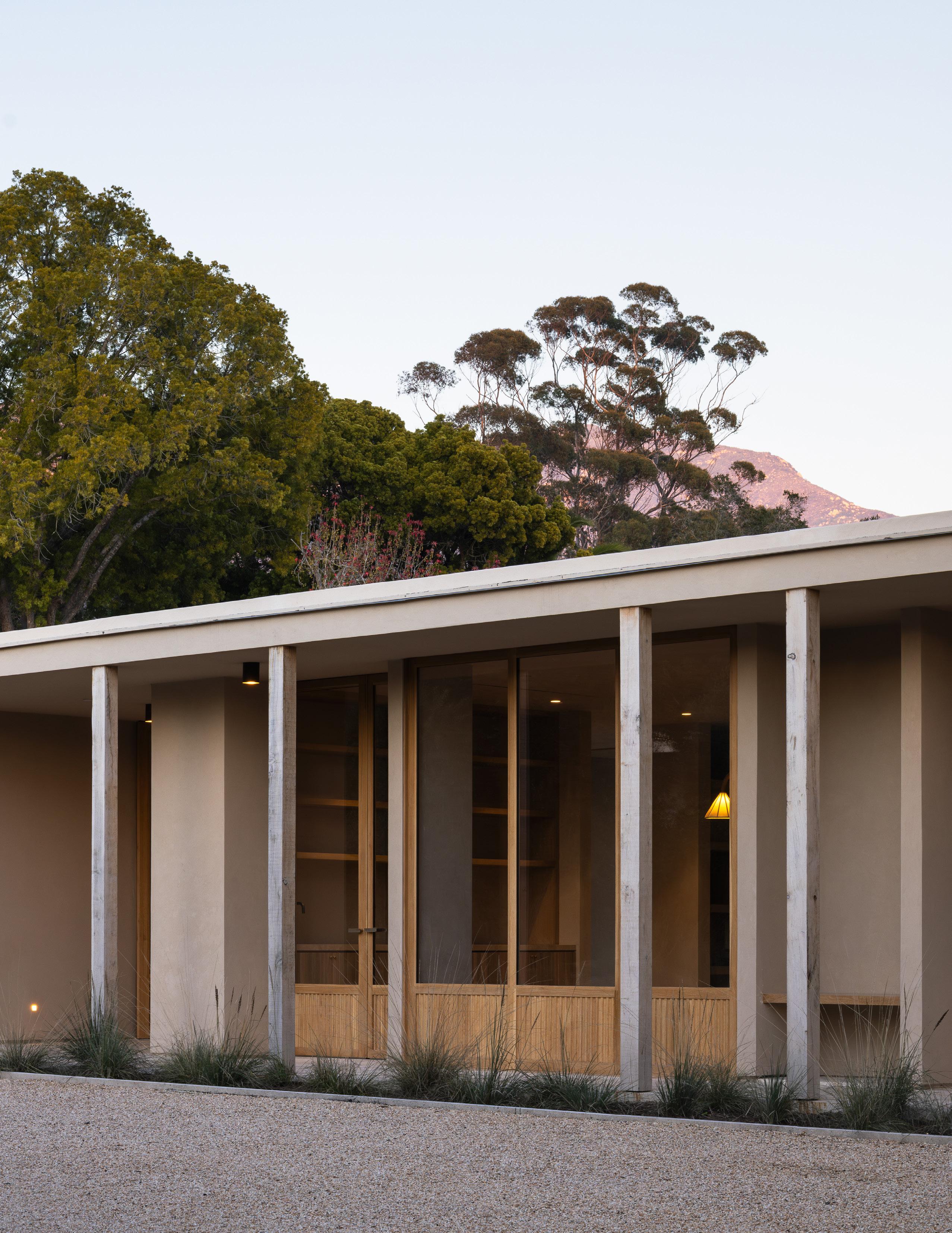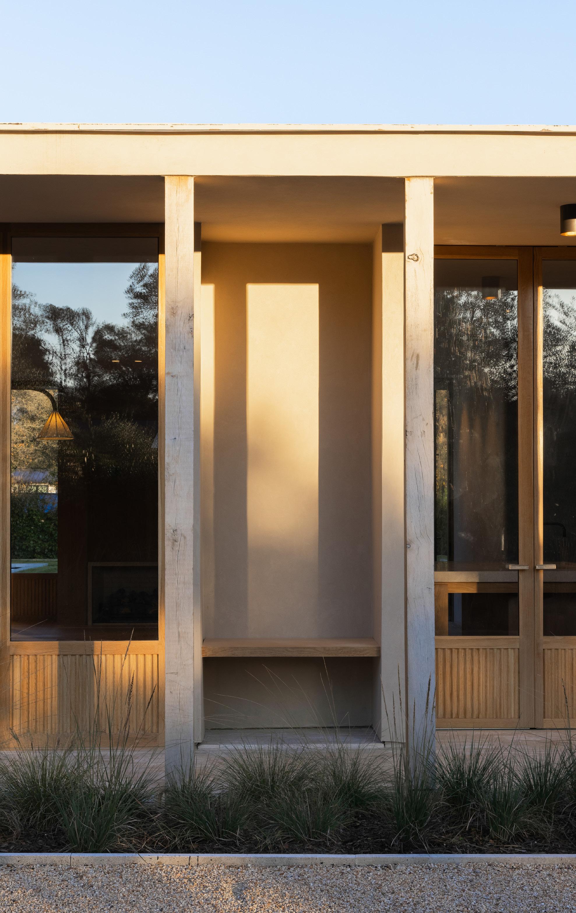 The home unfolds across a seamless single-story floor plan that prioritizes ease, flow, and livability. Natural materials anchor the interiors, creating a calm and grounded atmosphere throughout the living spaces.