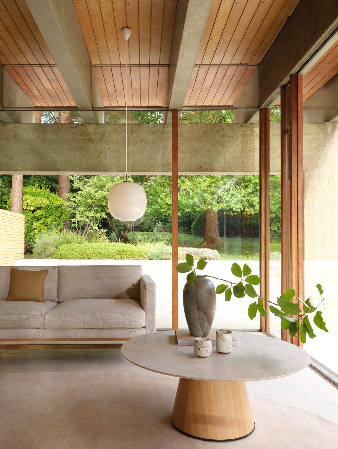 with the surrounding garden. Privacy from the street gives way to openness within, where glazing, proportion and materiality coalesce to shape a calm, human-centric environment. Here, Utzon’s modernism is not monumental but intimate - rooted in craft, climate and the rituals of daily life.