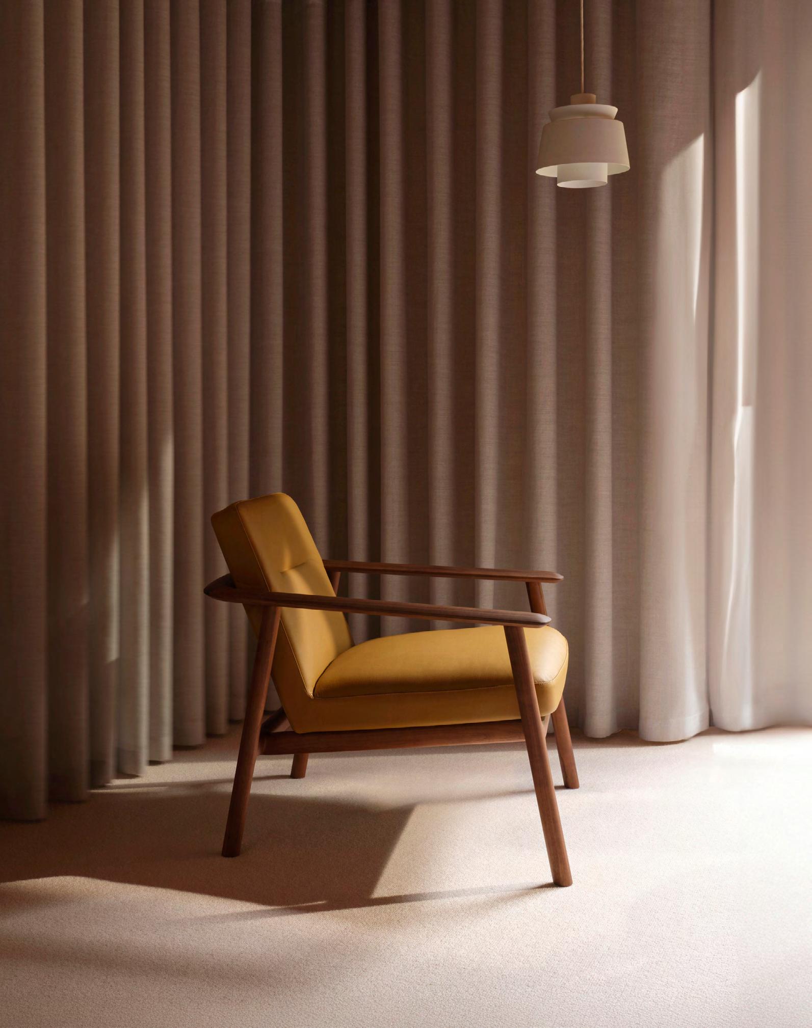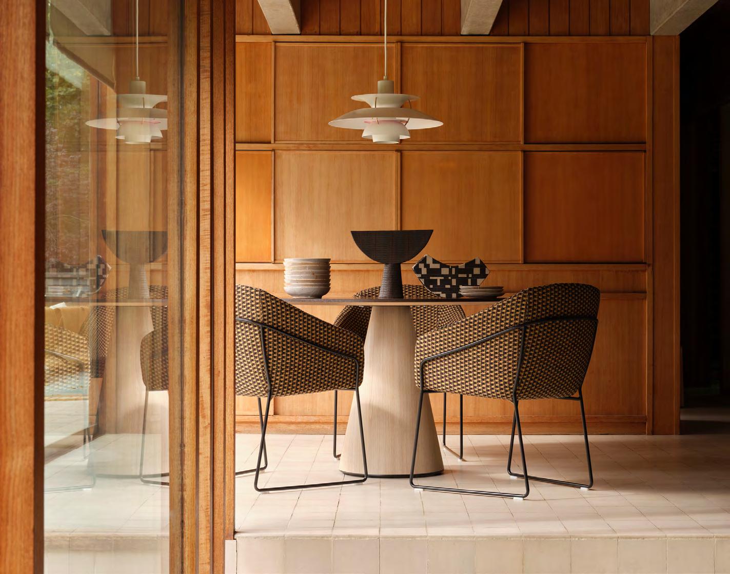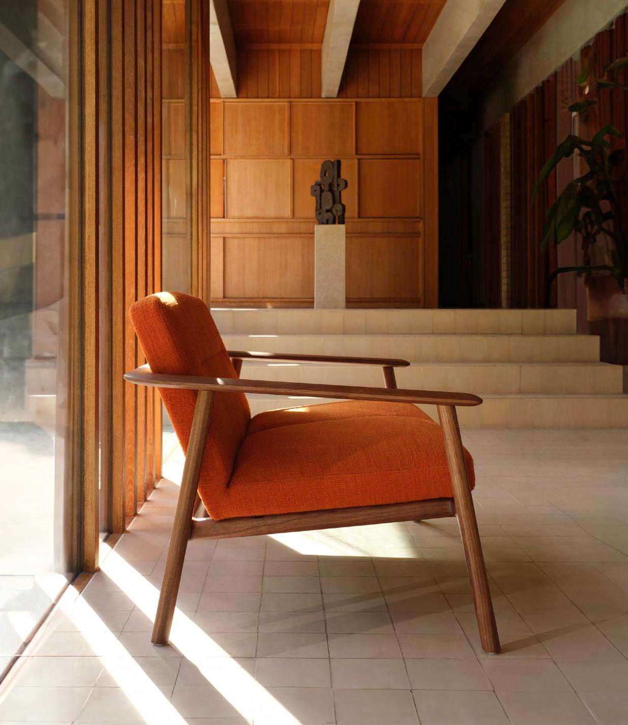 With its sculptural poise and refined detailing, Kato feels at home against Utzon’s minimal, earthy interiors. The chair’s quiet elegance echoes the architect’s belief in design that serves both beauty and purpose. companion to the geometry of Utzon’s spaces.