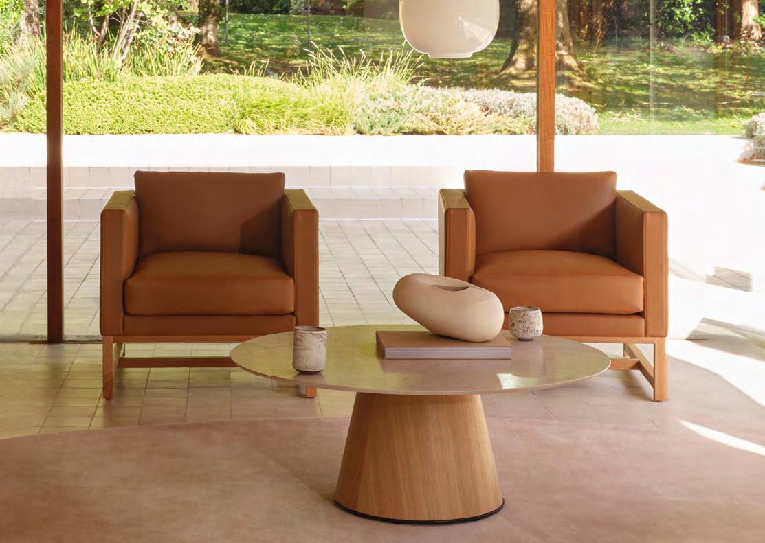 The inspiration behind Brooke is a simple one. A circle, nature’s perfect form, is not just the tabletop but is repeated in the tapering cone-shaped base that supports the surface. Comfortable, inviting, unobtrusive. The art of conversation. Design