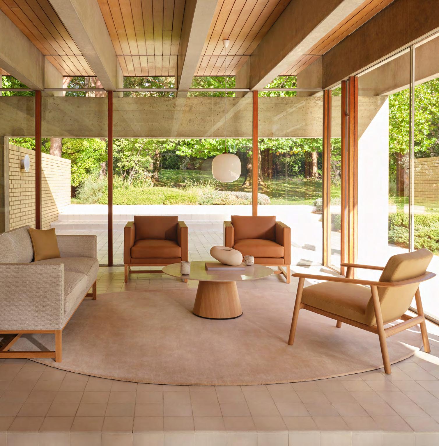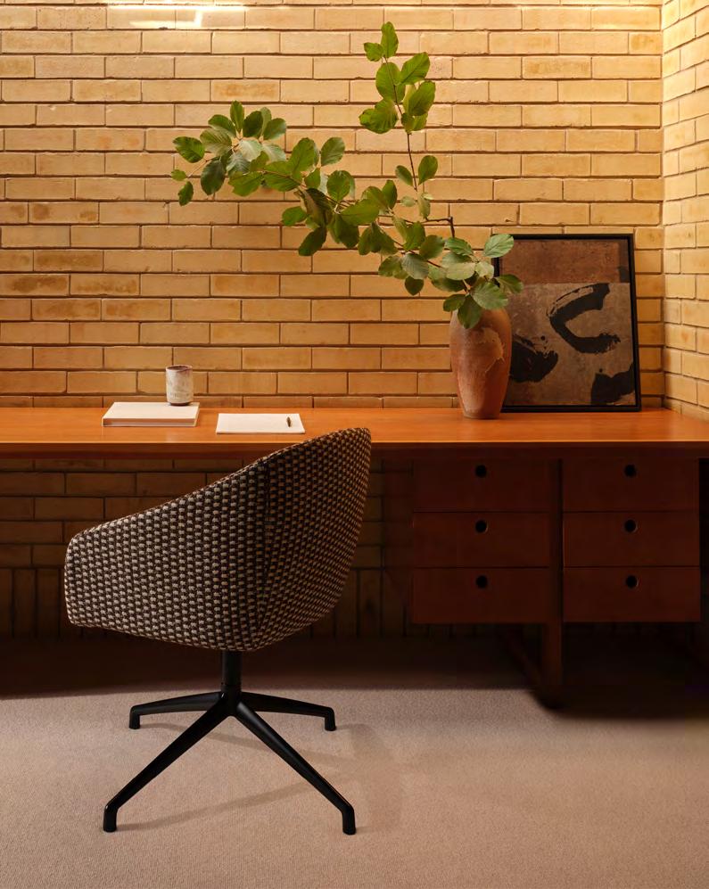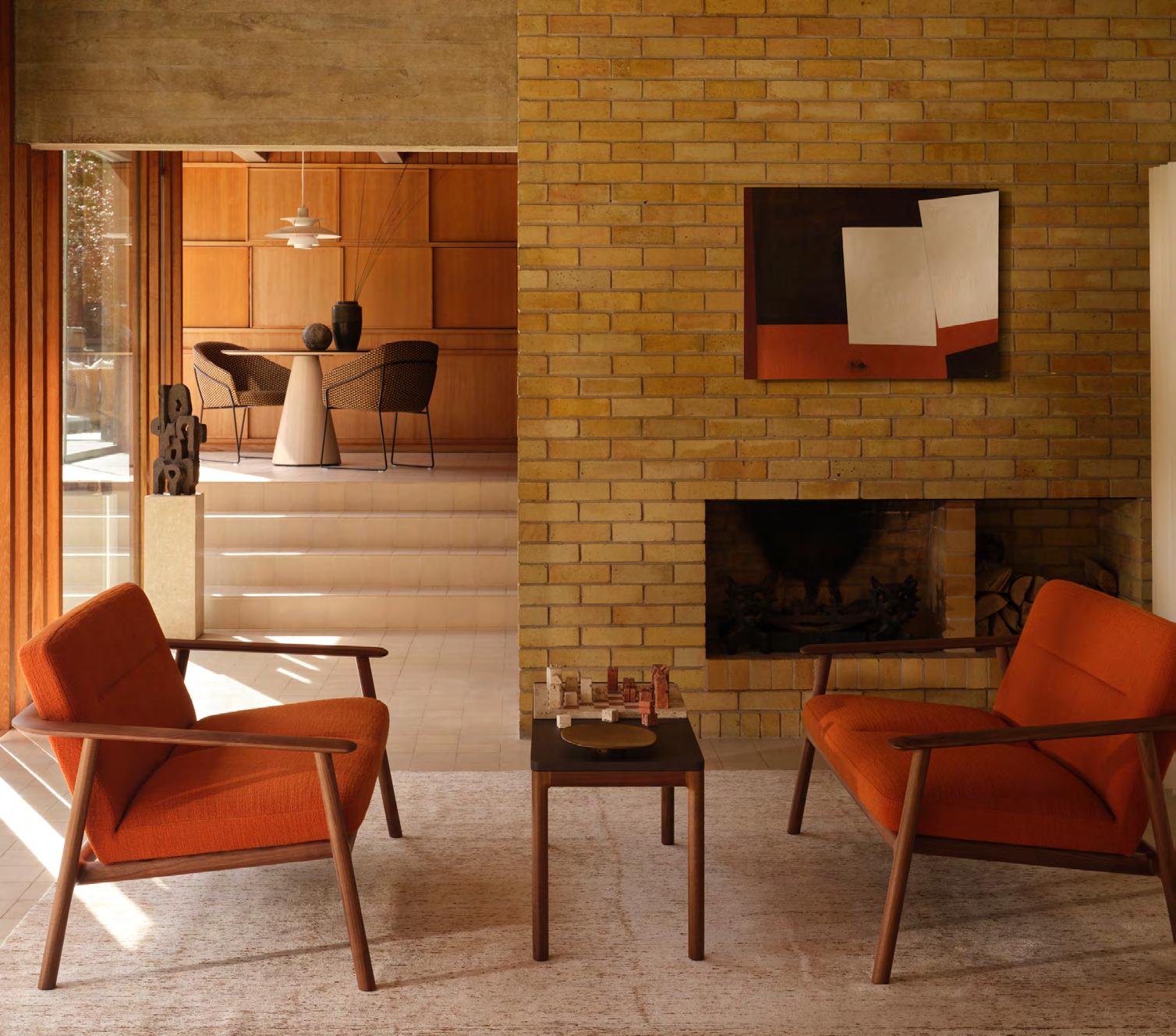 The architectural clarity and material quality proved a perfect backdrop to the craftsmanship and organic sensibility that anchor the aesthetic for the Kato, Paloma and Brooke collections by Boss Design. The furniture’s refined lines, timeless silhouettes and emphasis on comfort integrate homogenously with Utzon’s restrained palette of brick, timber and concrete. Bathed in soft daylight and framed by the house’s indoor–outdoor connection that seamlessly invites nature into the built environment, each piece feels considered rather than placed - part of a shared design language that spans decades.