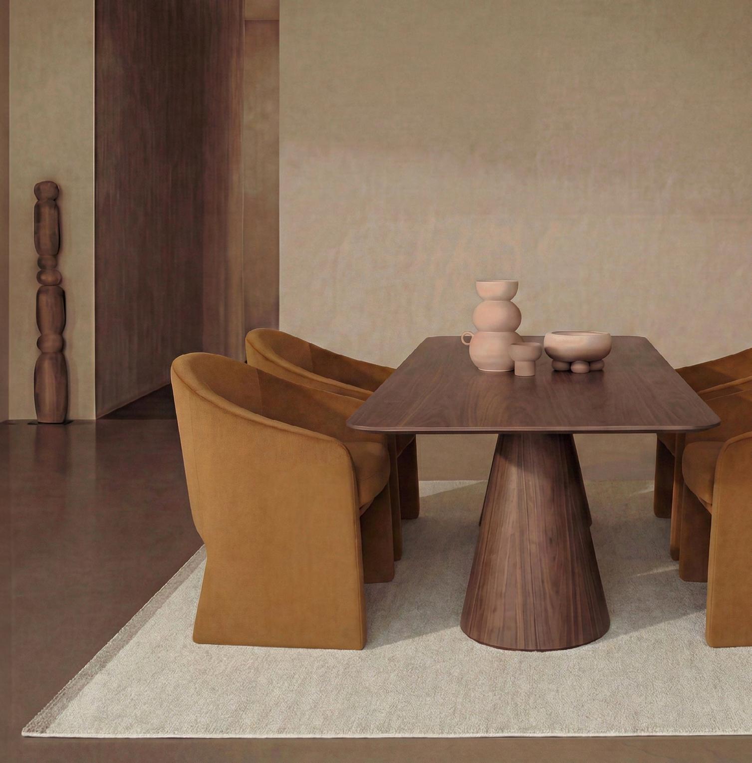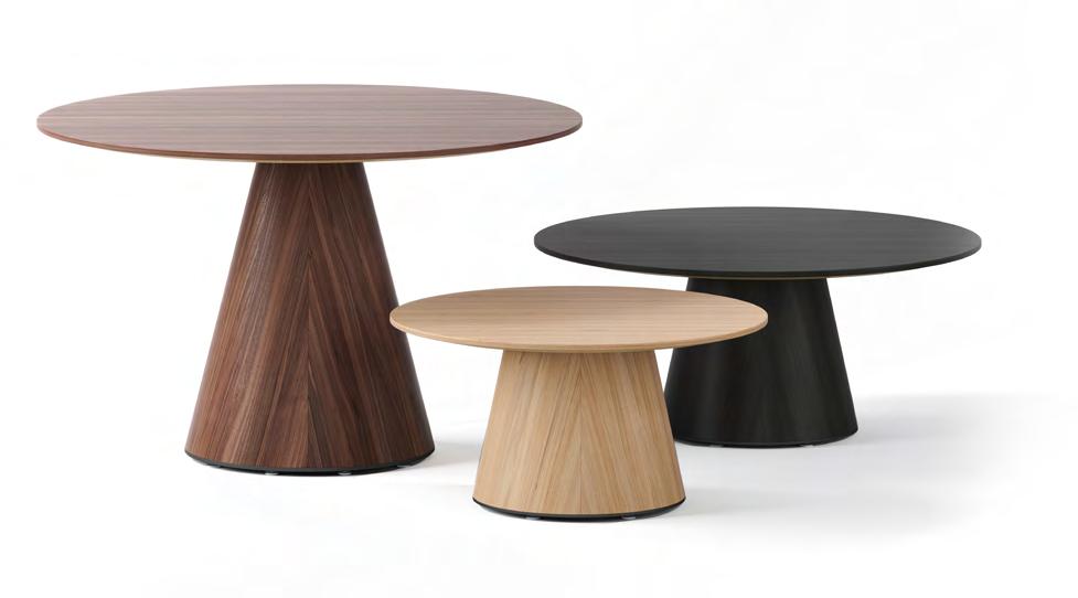 eye contact with everyone seated at the table. The cone silhouette was the most harmonious shape for the base, in order to complement the many varieties of table-tops and seating that we offer alongside Brooke.