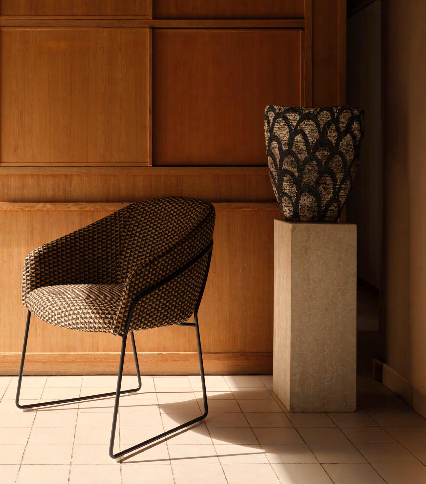 If those designs are siblings, Lumae is the sophisticated elder, poised, confident and effortlessly adaptable. Picture it upholstered in rich velvet within a members’ lounge or specified in a contemporary woven textile inside a high-end hotel suite. It feels equally at home in executive meeting spaces, hospitality environments and private lounges.