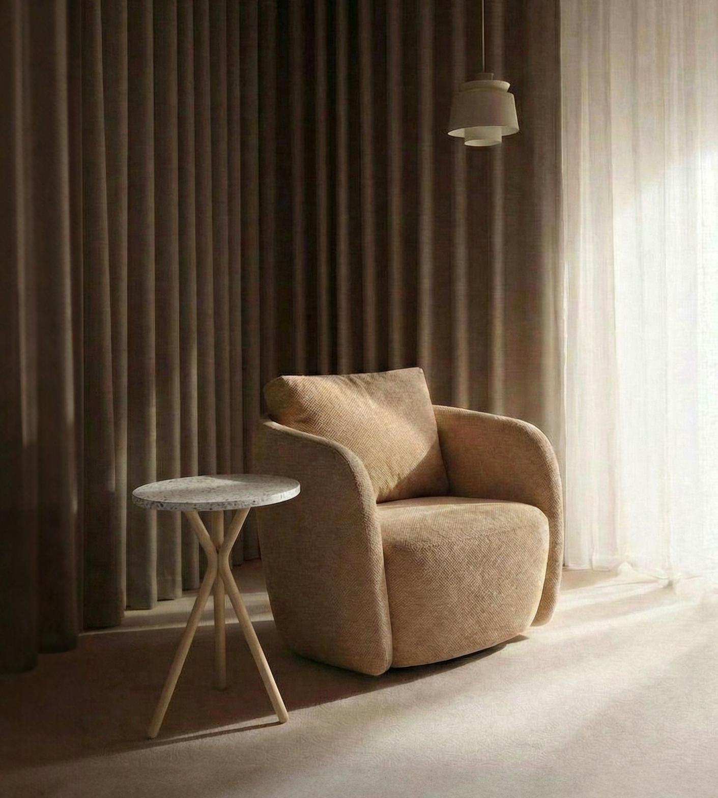 Nya is more than a lounge chair, it’s a refined response to modern spatial challenges: compact, sculptural, and deeply comfortable. It is a chair that invites you in, supports you completely, and quietly elevates the spaces it inhabits.
