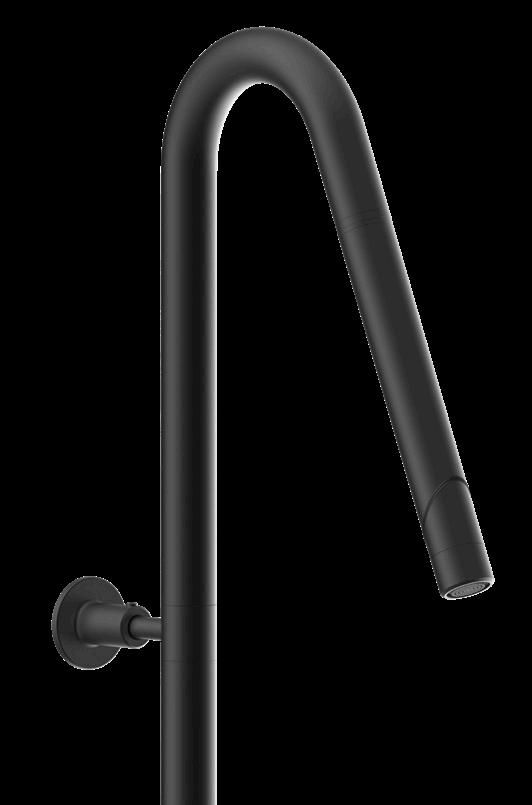 PLY introduces considerable typological and functional innovation. The clean and minimalist shower column features a very small shower head but with an incredibly generous and enveloping water spray. A special lever behind the pillar slides the terminal downwards so that it becomes a comfortable hand shower. The casing below the shower tap houses the mechanism for moving and balancing the entire system.