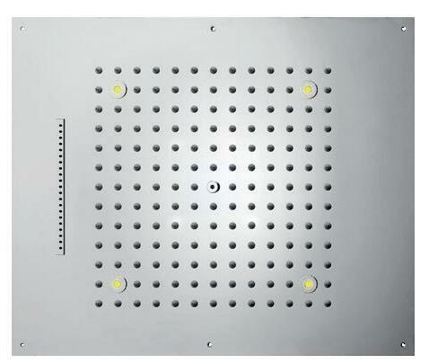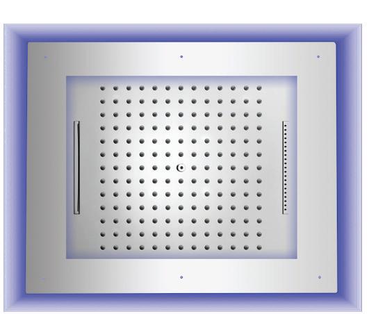 Soffione a 3 getti, con luci Led RGB cromoterapia. 600x500 mm. Getti: Pioggia, cascata, nebulizzato.