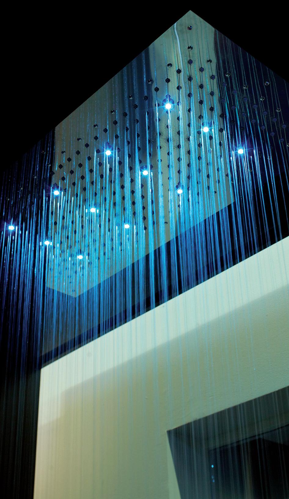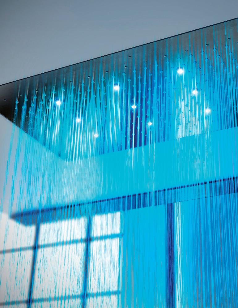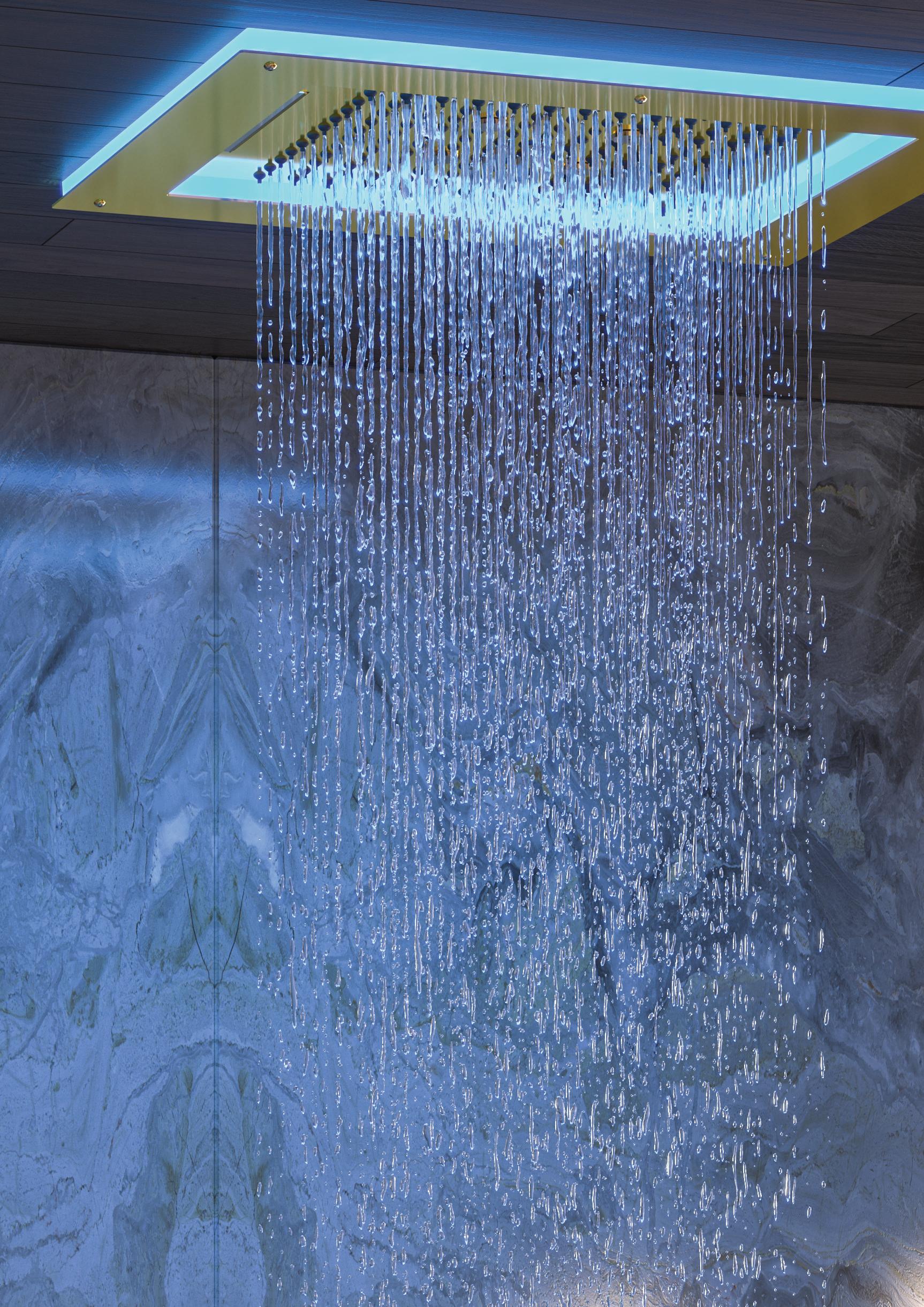 Un getto a pioggia ampio e avvolgente, per una sferzata di energia mattutina, o per un momento di rilassante abbandono che liberi dallo stress e dalla stanchezza di una giornata impegnativa. I soffioni da controsoffitto Frame sono stati pensati per esaltare le qualità sensoriali ed emozionali che l’acqua è in grado di regalarci. Frame con la sua straordinaria dimensione “King Size”, consente di lasciarsi avvolgere da un’autentica cascata d’acqua, abbandonandosi ad un abbraccio naturale che vivifica il corpo e la mente, sciogliendo ogni tensione. L’acqua accoppiata a luce e colore può avere importanti effetti benefici sul benessere. In linea generale, i colori caldi come il rosso, l’arancio, il giallo, sono stimolanti ed energetici; i colori freddi come il blu, il viola, il verde, hanno invece proprietà distensive e rilassanti.