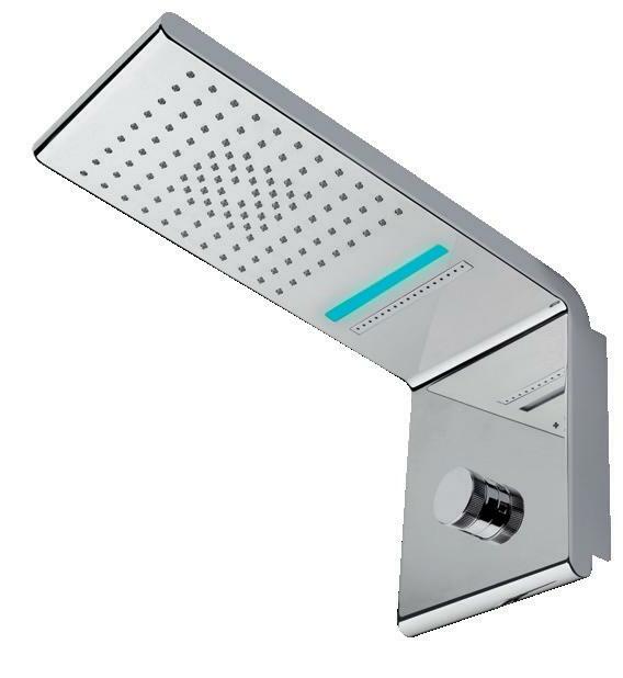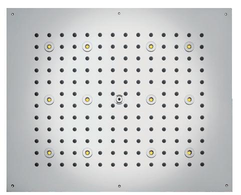 Frame ha un’estetica molto raffinata, caratterizzata da un soffione in acciaio inox da controsoffitto di forma rettangolare, inserito in un elegante cornice dal quale si diffonde la luce LED RGB cromoterapia. I colori fanno parte da sempre del nostro mondo, sono forza vitale e fonte di energia. La cromoterapia è in grado di stimolare il corpo e la psiche per aiutarli a ritrovare il loro naturale equilibrio.