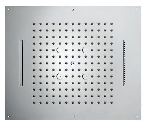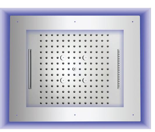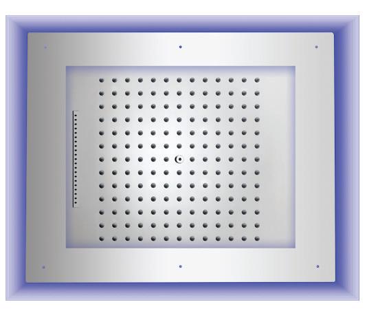 HI0930 - Frame/3 Soffione a 3 getti, con luci Led RGB cromoterapia 600x500 mm. Getti: pioggia, cascata, nebulizzato Finitura: Acciaio spazzolato opaco