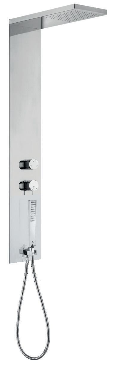 Frame is available in the single-jet or multifunction version with two to four different jets: wide rain jet, a large and enveloping rain, regenerating waterfall jet for a burst of energy, comb waterfall, mist or kneip jet of pure water. Easy to install, it works with only 16 L/min and is equipped with the "quick drainage" system that allows you to empty the residual water from the shower head in a short time. It is supplied complete with remote control for chromotherapy led lights, low voltage transformer and water supply hoses.
