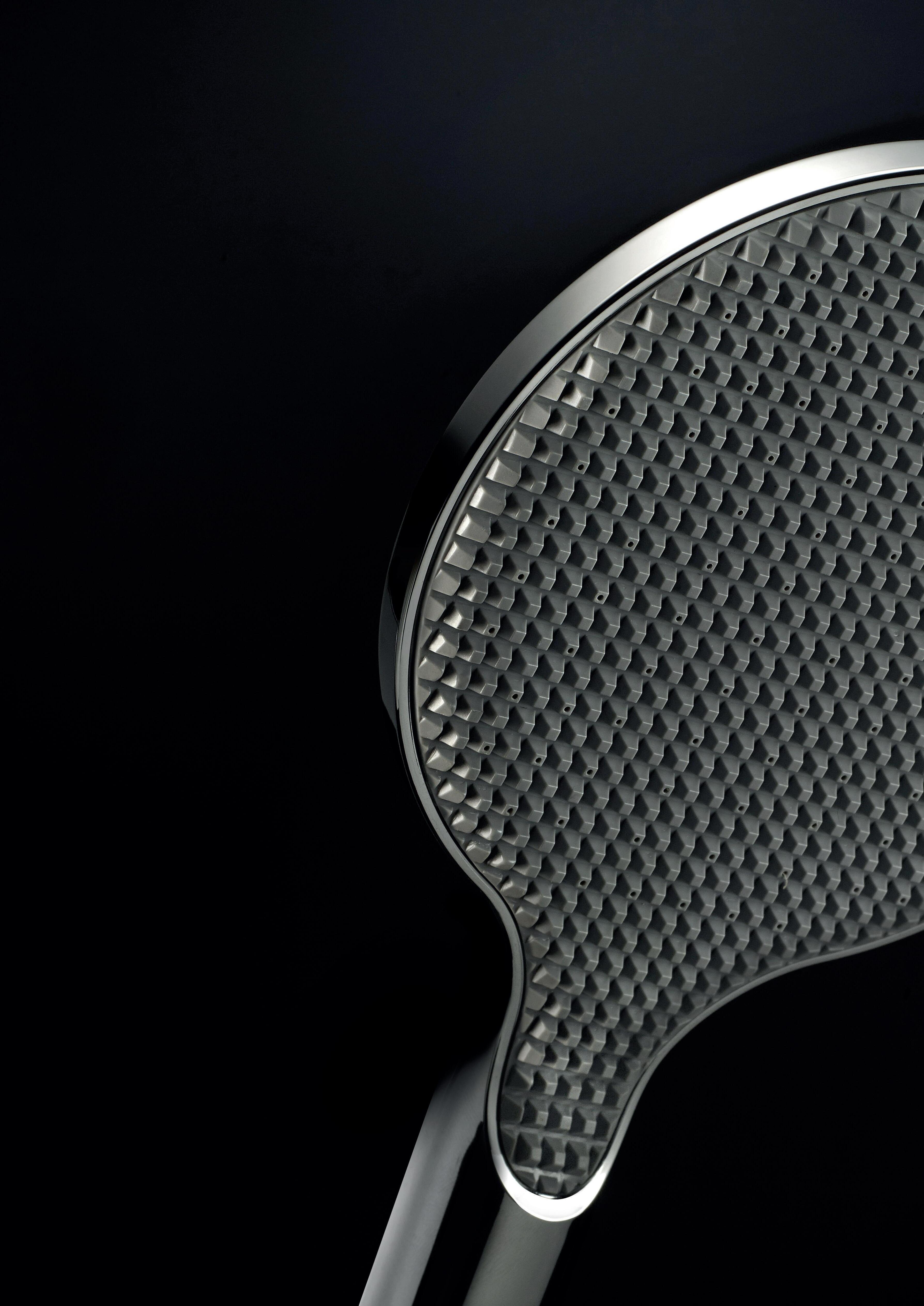 Apice è la doccia pensata per erogare un getto ampio e avvolgente che consente all’acqua di avvolgervi come un manto, regalando alla vostra pelle il piacere nuovo di una carezza energica, che scivola via portando con sé tensioni e stanchezza. Qui si fondono funzionalità, ergonomia e design: la dimensione della doccia diametro 140 mm promette un piacere della doccia in formato XXL. Questa inedita superficie texturizzata in continuo, in gomma termoplastica molto morbida, è stata concepita per permettere un contatto molto più diretto con il corpo quasi uno strumento di massaggio.