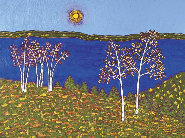 “In these anxious times,” she continues, “it’s important to seek out and celebrate moments of joy. Finding Joy [currently at Blue Door Gallery, see page 64] is about recognizing the delight and wonder found in simple, often unexpected, places. These paintings celebrate those times when the beauty of the natural world suddenly stops you in your tracks: being mesmerized by a starry night sky, noticing how
