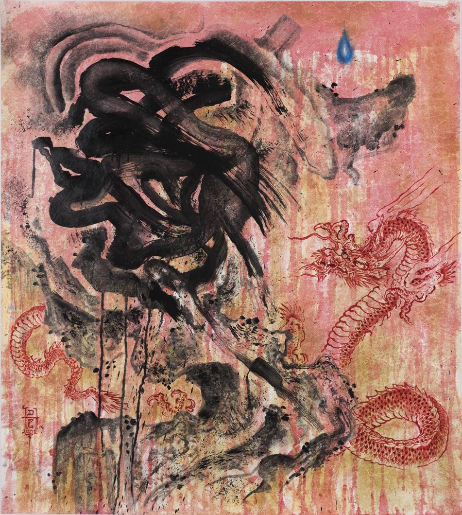 Through October 26: Dan Welden: Haystack Crescendo, a new suite of hybridized prints—neither pure print nor painting—black and white etchings upon which master printmaker Welden has applied acrylic, watercolor and crayon. Created during a residency at Haystack School of Crafts in Deer Isle, ME, using abandoned, corroded zinc printing plates, already partially etched by nature.