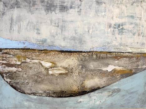 Marcia Crumley, October Marsh, February 2025, encaustic on panel, 36 x 24". Courtesy of the artist.