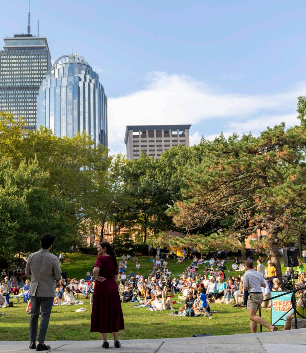 Page 3, from top: Street Stage at Plaza Betances with partners from Inquilinos Boricuas en Acción (2025); Create Your Own Opera participants at Saint Brendan School, Dorchester, MA (2025); and Rodgers & Hammerstein’s Carousel (2025).