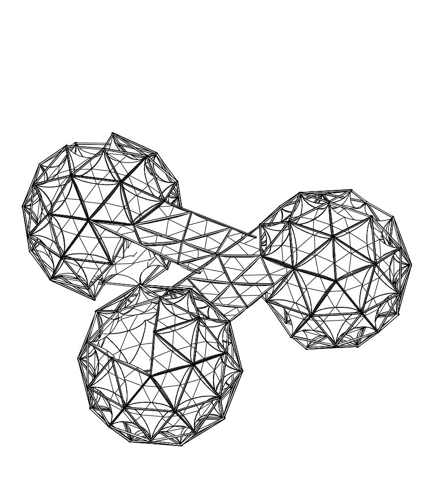 The parametric structure of the dome, formed by the repetition of a triangular module, allows for the combination of multiple domes. This creates a larger space that can accommodate double the capacity of people. Therefore, the arrangement of domes can extend to up to three domes, suitable for events requiring larger areas.