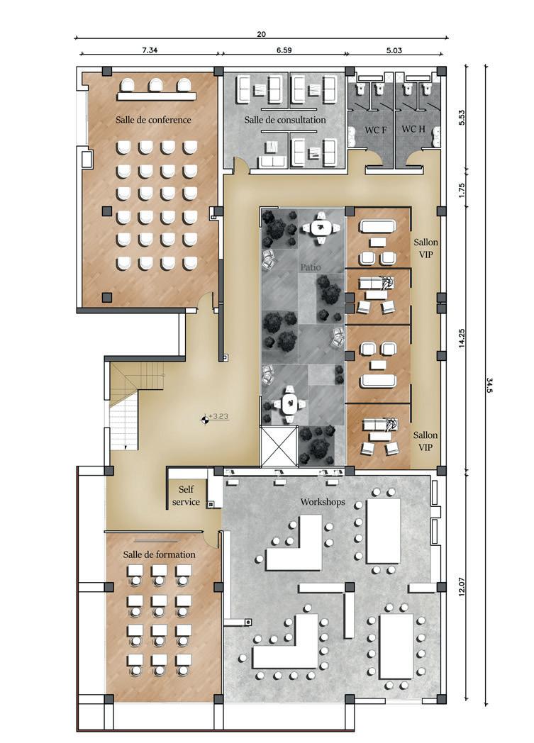 The project unfolds through six phases guided by a central concept, aiming to seamlessly blend into its surroundings. The idea is to link diverse levels using urban staircases, resulting in an architectural promenade that begins at Boulevard Ourida Meddad, runs through our project, and finally extends to Boulevard de la Victoire.