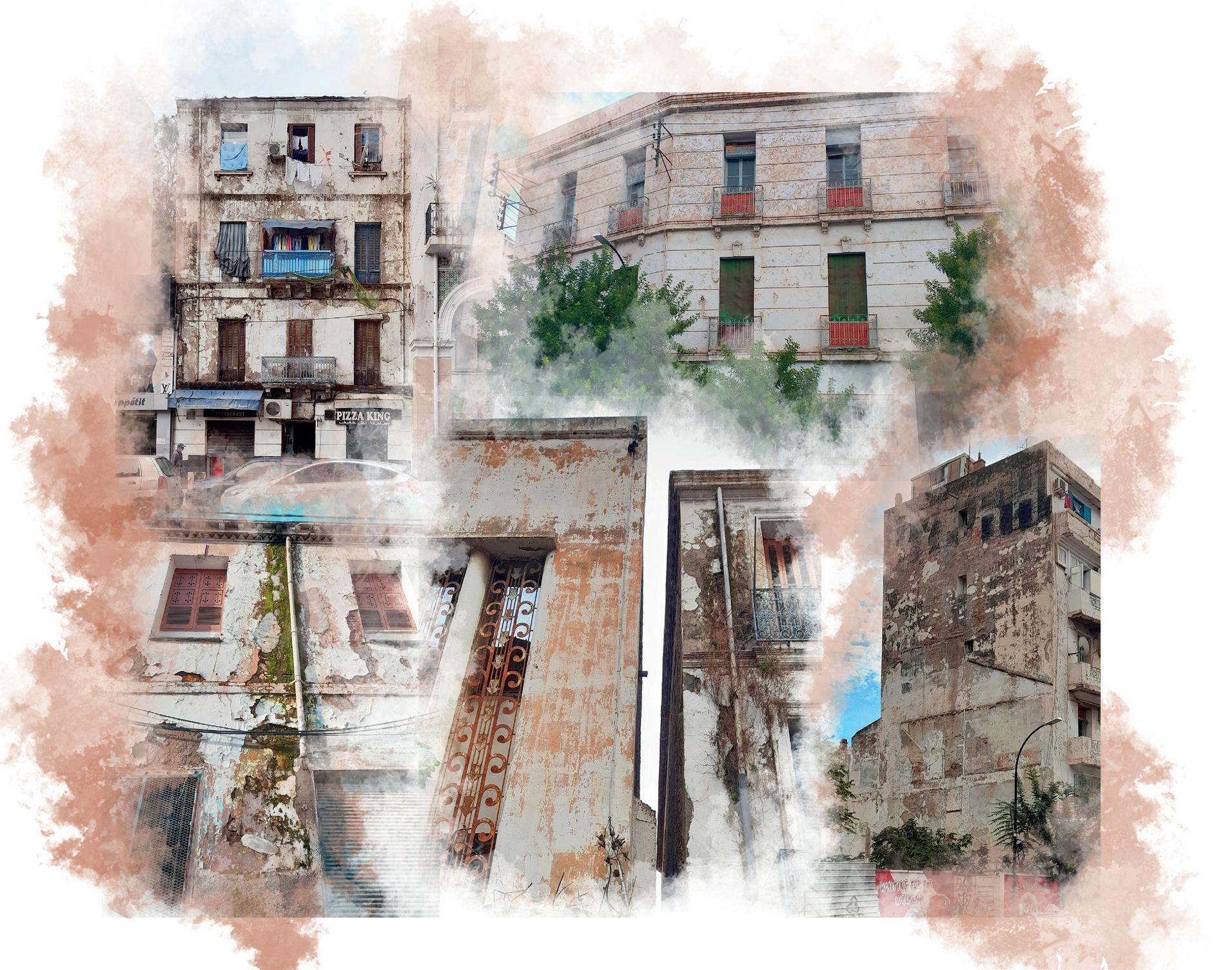 Usus becomes evident in the Hamma-Belcourt neighborhood and along Mohammed Belouizdad Boulevard through various manifestations: polychromy, chipping, darkening, mold, and swelling, which extend across multiple typologies.