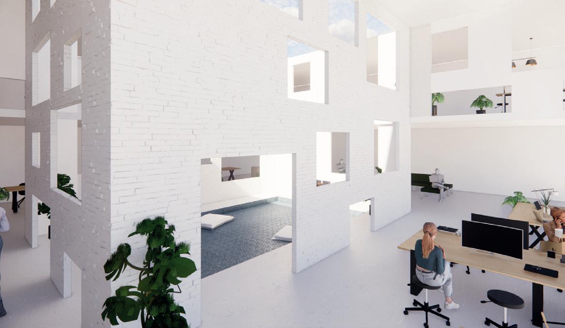 We’ve reimagined this transition as a connecting element, resulting in perspectives that open both ways. Interior inbetweens become circulation halls, linking fragmented volumes.