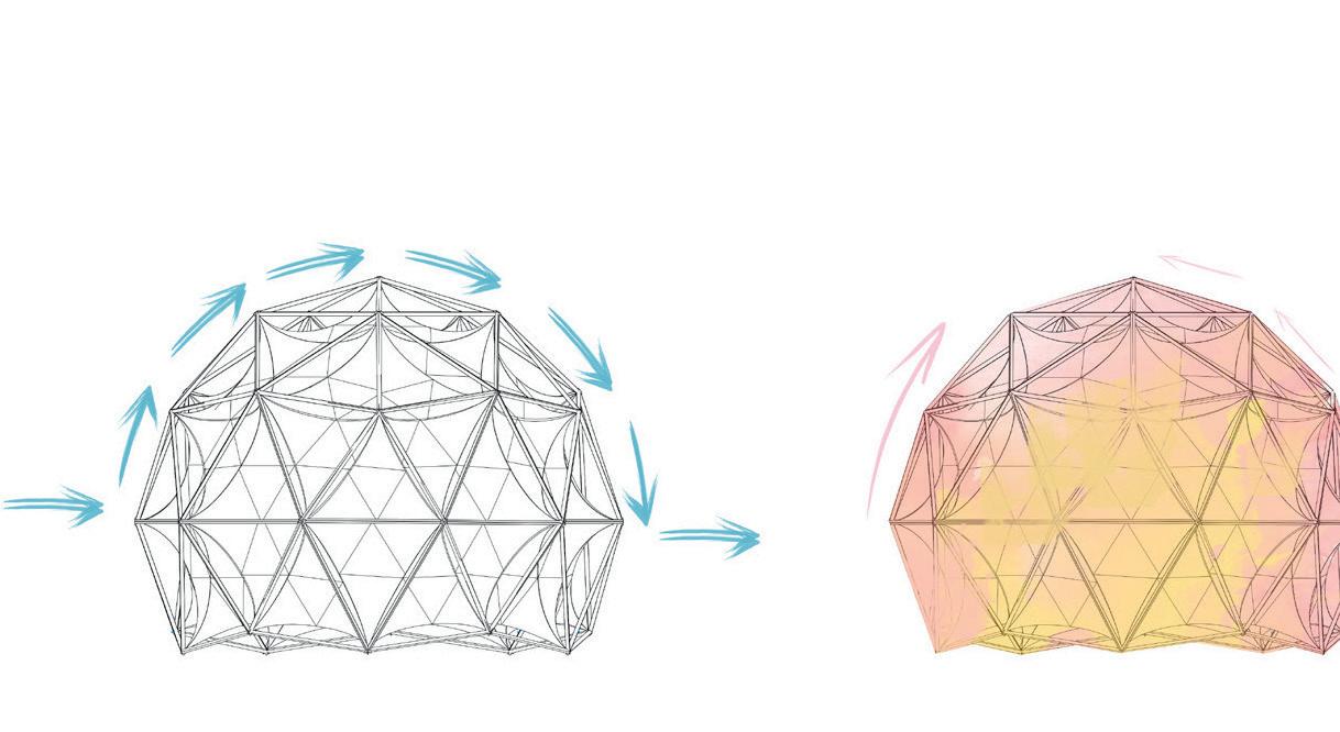 The dome’s overall shape guarantees passive interior comfort by maintaining a consistent ambient temperature, along with high resistance to wind and weather changes.