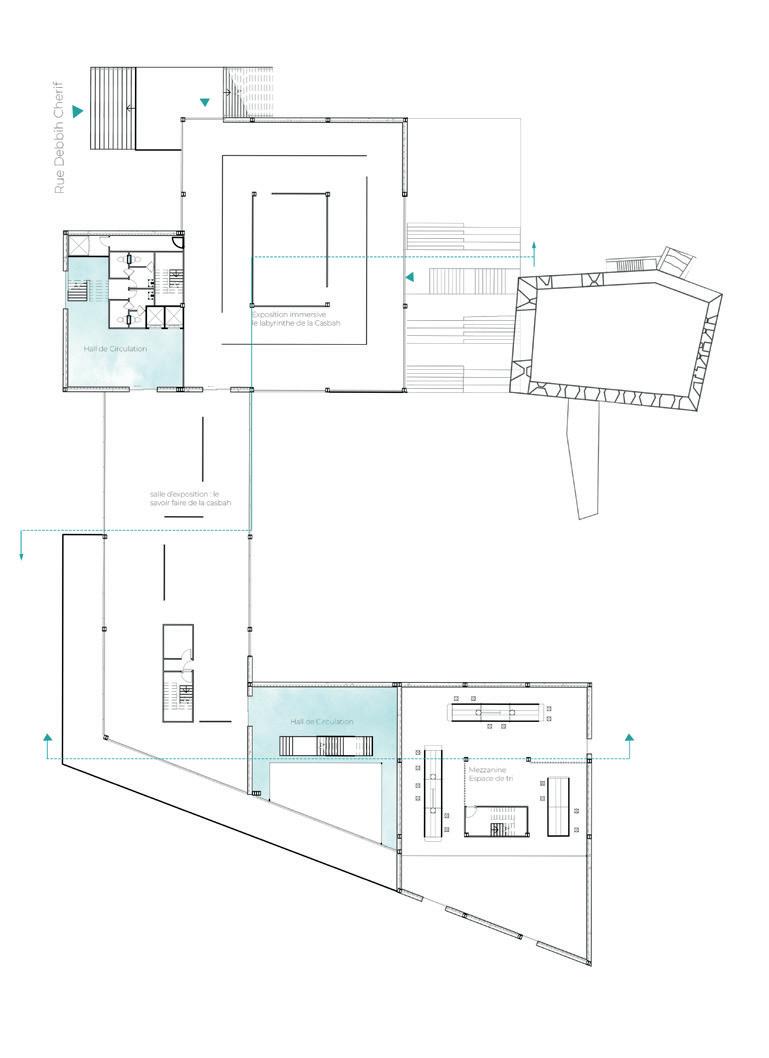 This arrangement encourages a harmonious interplay between circulation, the bastion plaza, and Ourida Meddad Boulevard.