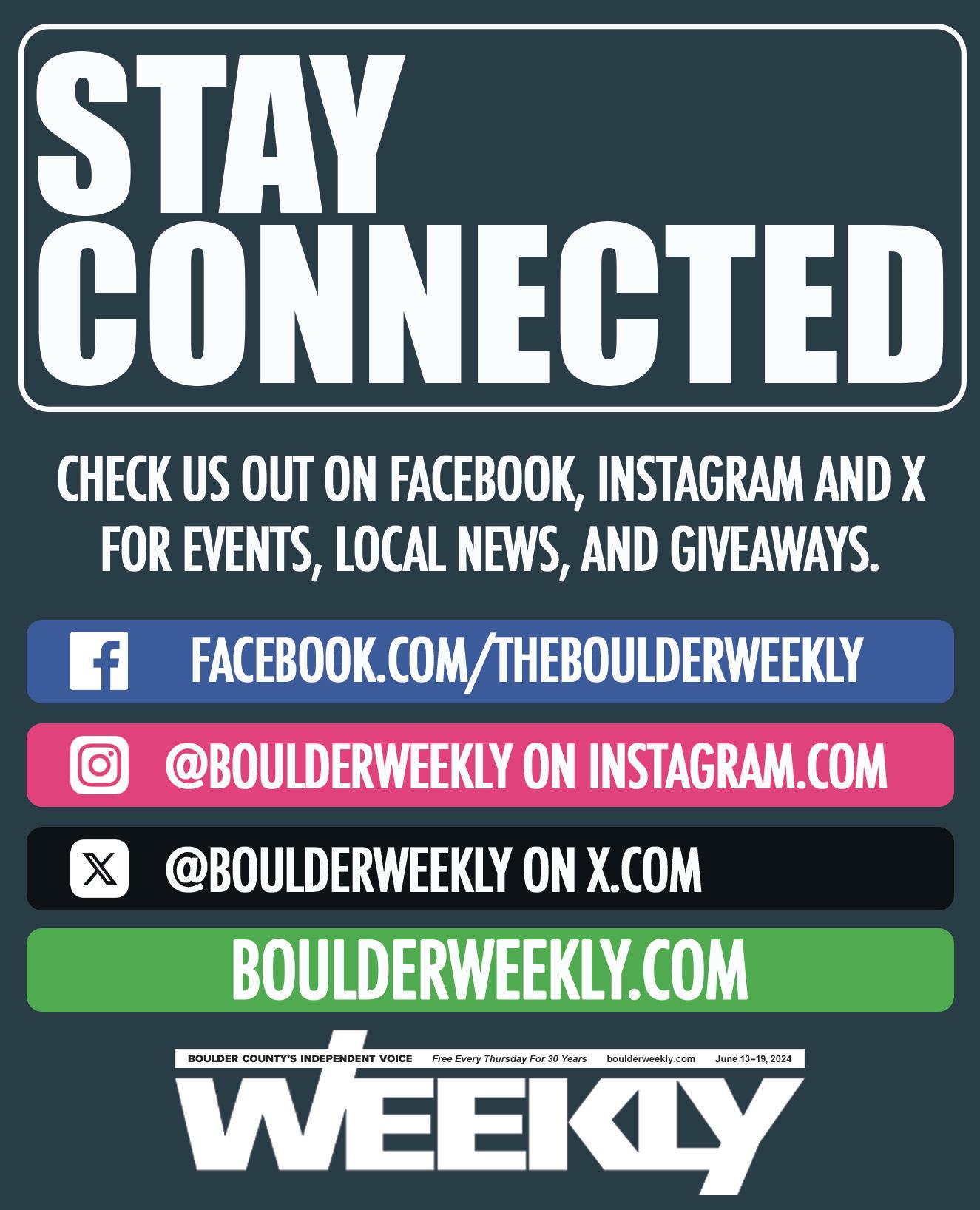 Boulder Weekly is published every Thursday. No portion may be reproduced in any form without written permission from the publisher. ©2024 Boulder Weekly, Inc., all rights reserved.