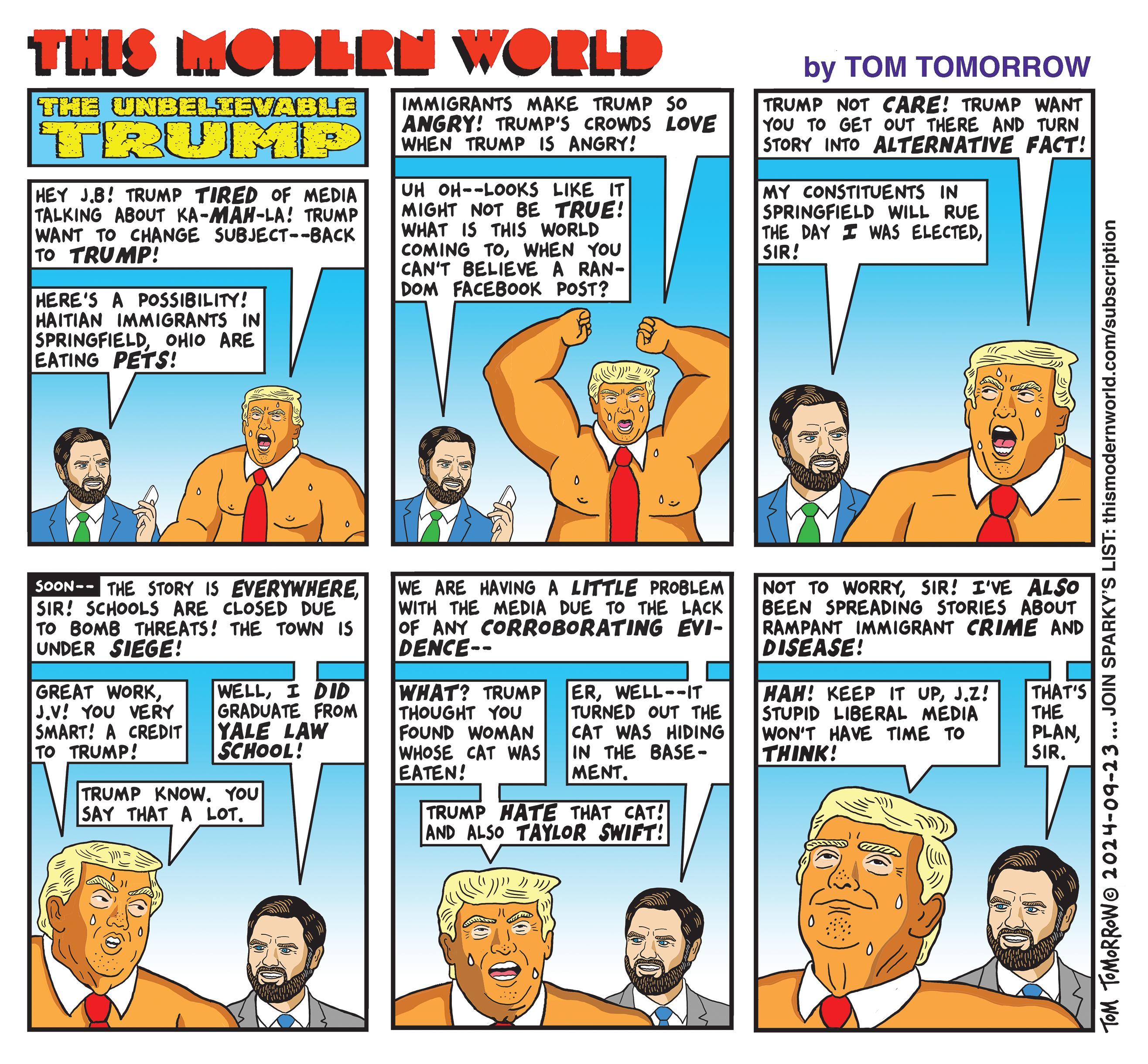 It’s 2024, not 2014. Donald Trump attempted an insurrection. He’s currently advancing a racist conspiracy about Black immigrants abducting and eating house pets. He is a worthless shart stain with no redeeming qualities or virtues, and that’s been abundantly clear to anyone with a brain for at least nine years now. Being for Trump at this point ... it’s not exactly the same as just mindlessly supporting Tom Tillis. It’s an act of active malice or supreme stupidity.