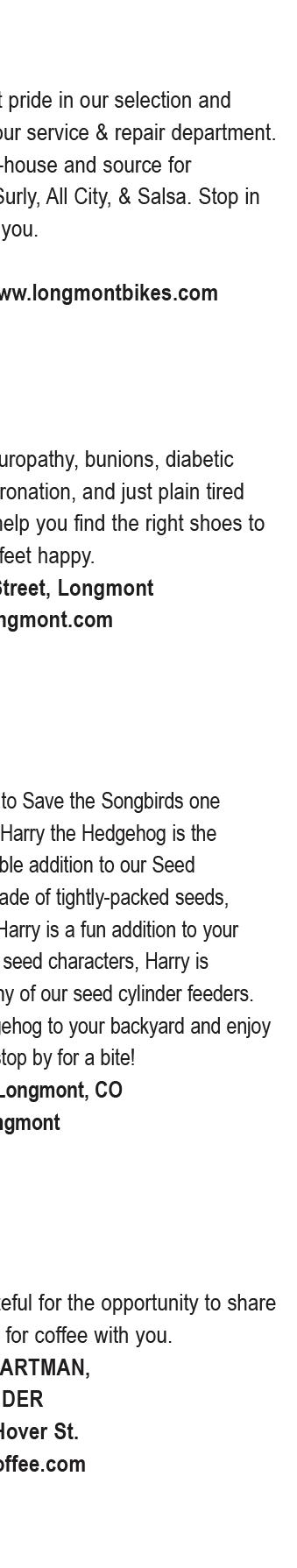 As Boulder County’s only independently owned newspaper, Boulder Weekly is dedicated to illuminating truth, advancing justice and protecting the First Amendment through ethical, no-holds-barred journalism and thought-provoking opinion writing. Free every Thursday since 1993, the Weekly also offers the county’s most comprehensive arts and entertainment coverage. Read the print version, or visit boulderweekly.com. Boulder Weekly does not accept unsolicited editorial submissions. If you’re interested in writing for the paper, please send queries to: editorial@ boulderweekly.com. Any materials sent to Boulder Weekly become the property of the newspaper.