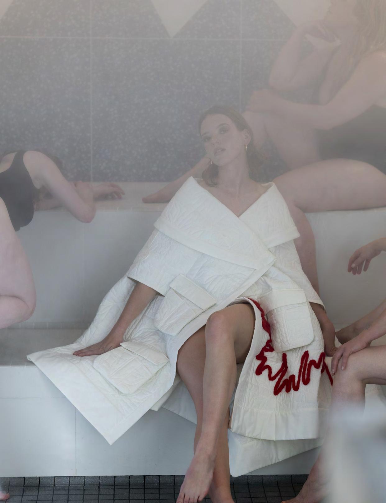 “Self-care is productive and now, more than ever, people are seeking experiences and embodiment practices that help them feel more alive. In fact, according to the most famous cold-dipper Wim Hoff, plunging into cold water builds resilience and inner strength and boosts the immune system. For this fashion story, I took the plunge and curated the fashion pieces through shape, texture and style to express both the feelings and rituals one practices when retreating to the spa.” Sarah is a celebrity fashion stylist and style curator and is known for her exceptional creativity and attention to detail.