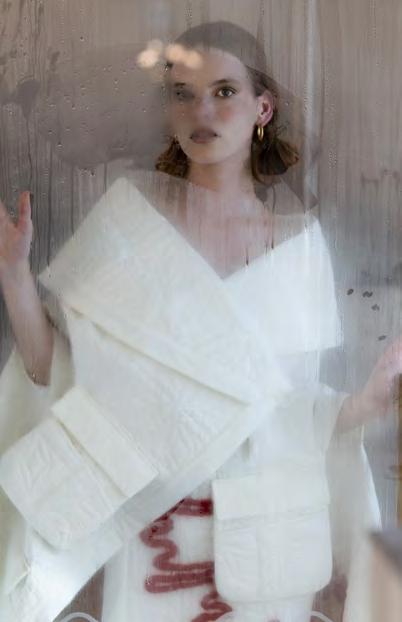 Model Cecilia Hughes, photographed at Ritual Nordic Spa for the fashion story in this edition of Boulevard, gets the full spa experience, including a bucket of cold water dumped on her head. It’s easy to imagine the jolt to the system it creates, but the use of thermal therapy (healing with heat), hydrotherapy (healing through water) and contrast therapy (healing through hot and cold contrast) goes back centuries. Cold therapy can help with everything from anxiety and weight loss to boosting mood and strengthening the immune system. “When the body is exposed to cold, the sympathetic nervous system is activated,” said Chelsea Gronick, a Kelownabased naturopathic doctor, who was quoted in a 2021 Boulevard story on cold-water therapy. “That’s the fight-or-flight response. Hormones like adrenaline are released, the heart rate increases and blood vessels constrict, forcing blood to your core. Once the body regulates it switches to a rest/relax/restore or parasympathetic nervous system. This training of your nervous system is a way to teach your body how to regulate when faced with various stressors, not just cold water but things that come up in daily life.”
