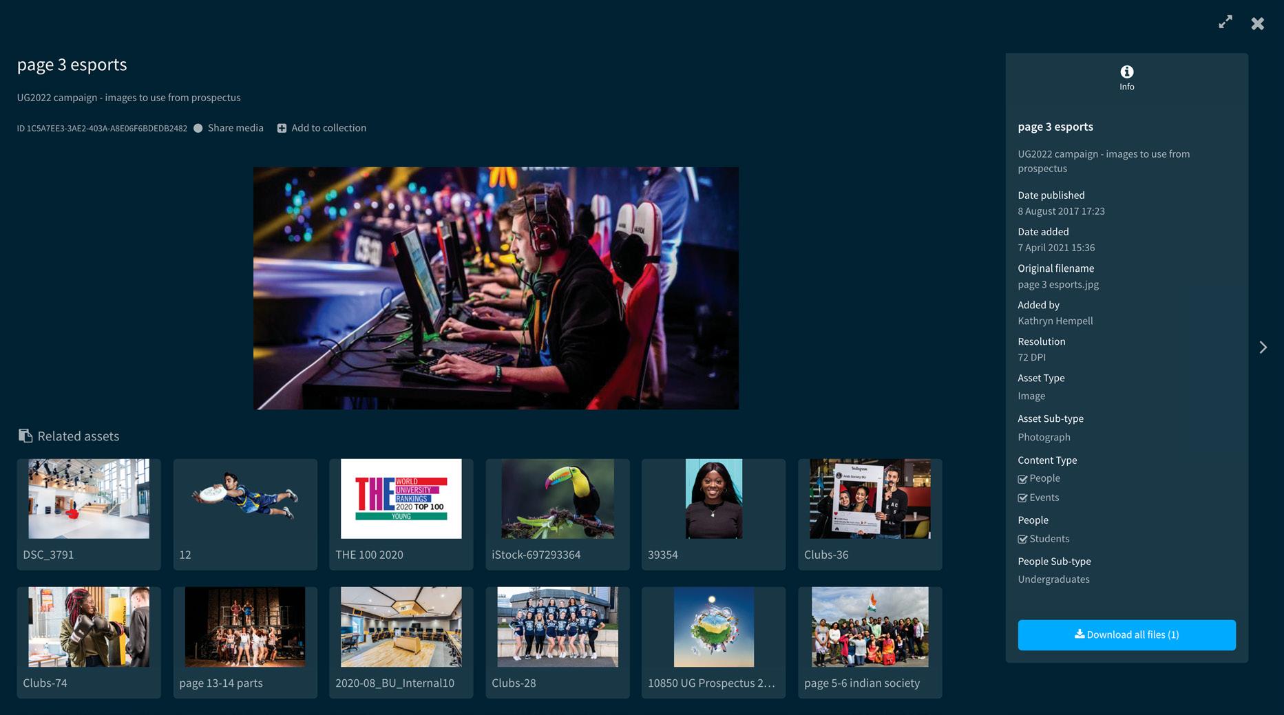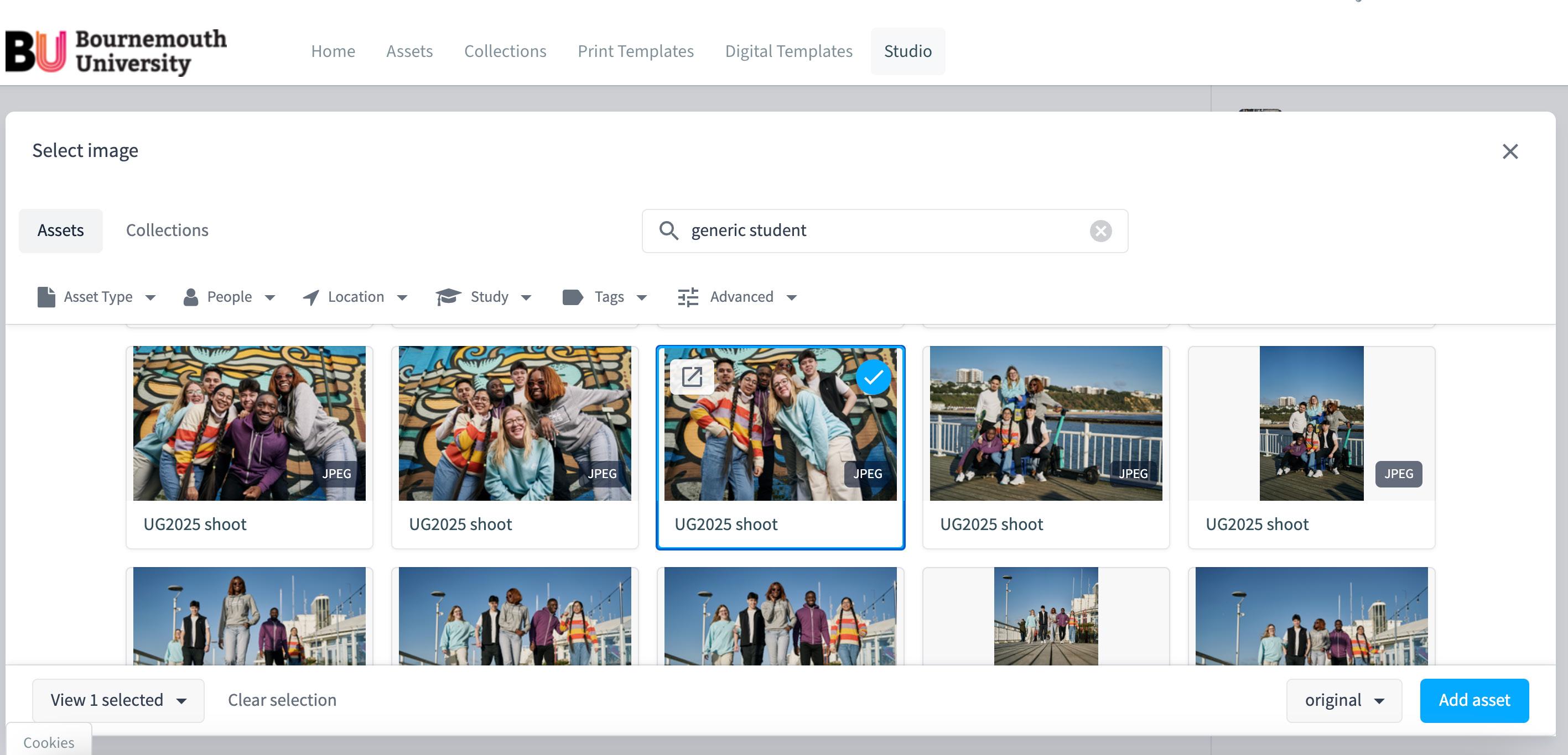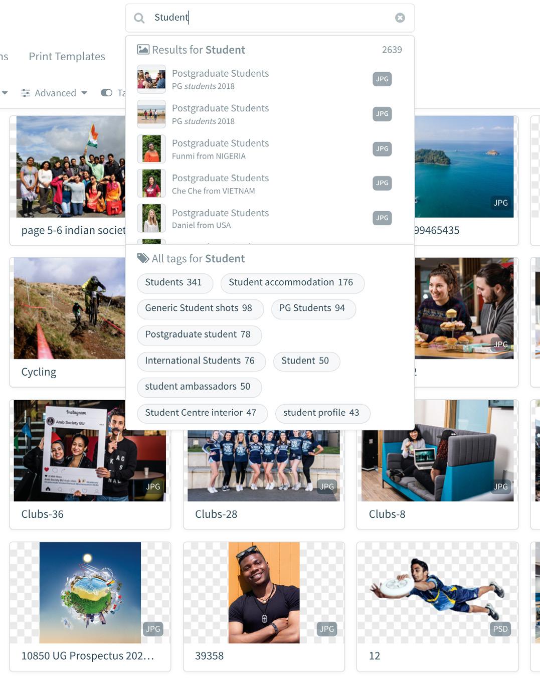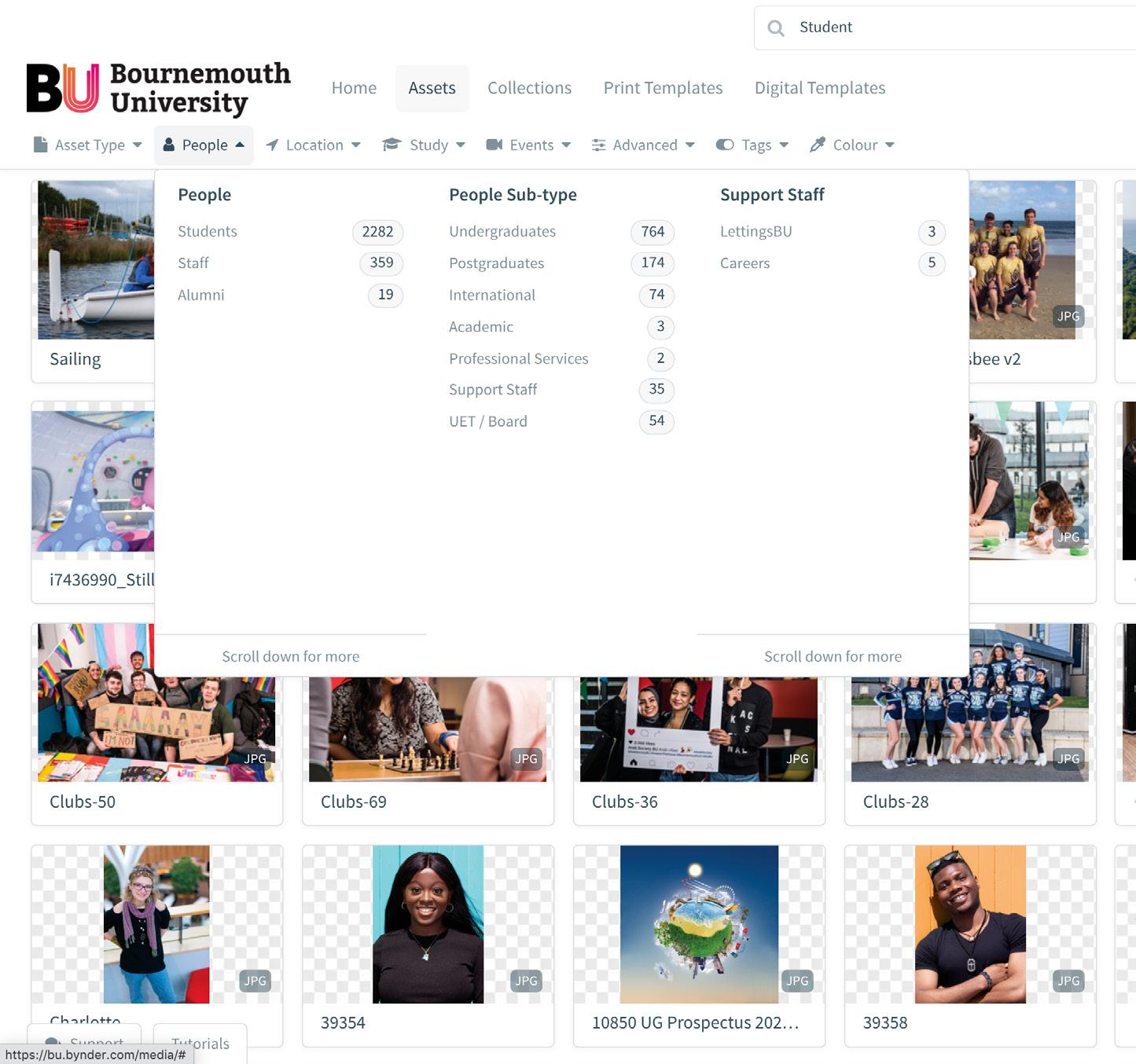 • For example, if you are only looking for assets tagged ‘Students’ assets, click the label ‘Students’ under the ‘People’ metaproperty