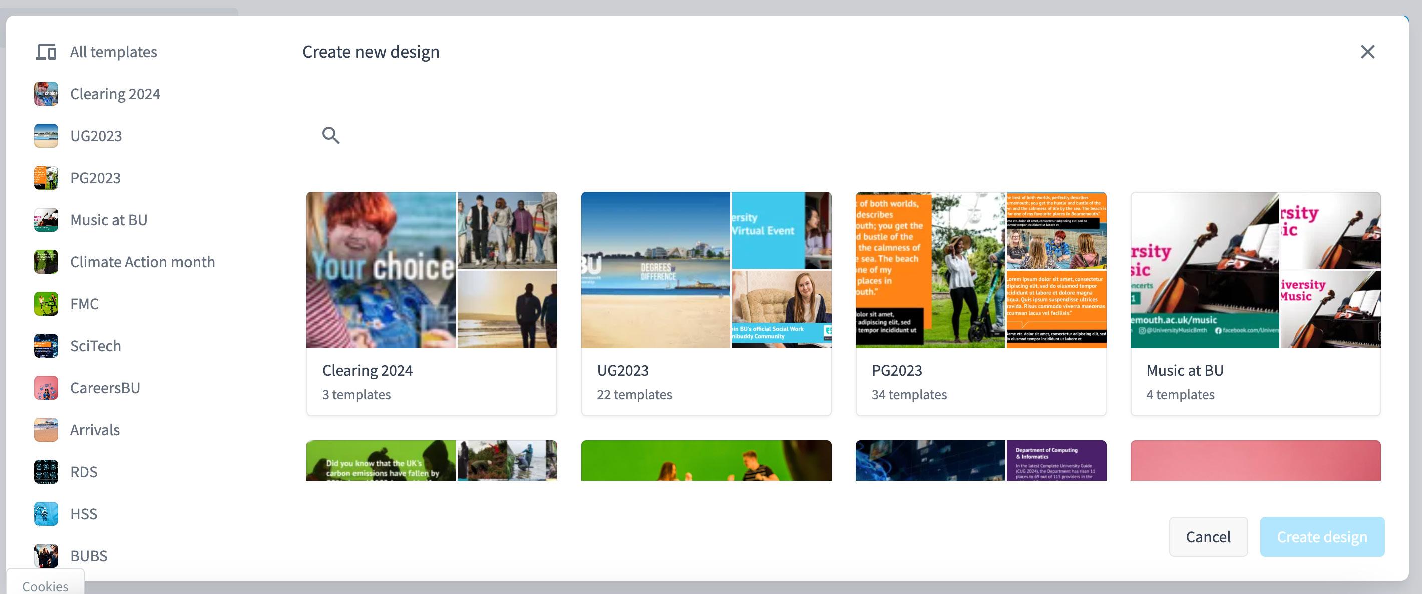 3. Select the relevant category (e.g. Clearing, UG2024, FMC, Alumni etc) you want to create a design for.
