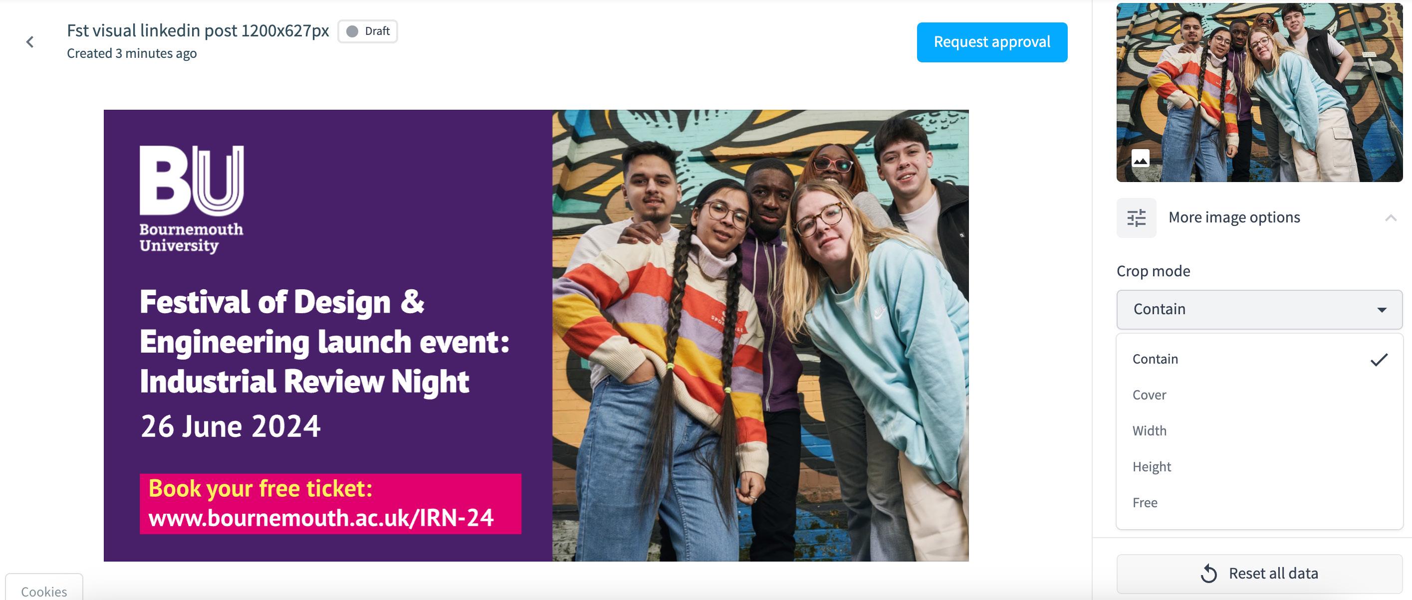 7a. The image can be adjusted to fit the space using the ‘Crop mode’ drop-down menu.