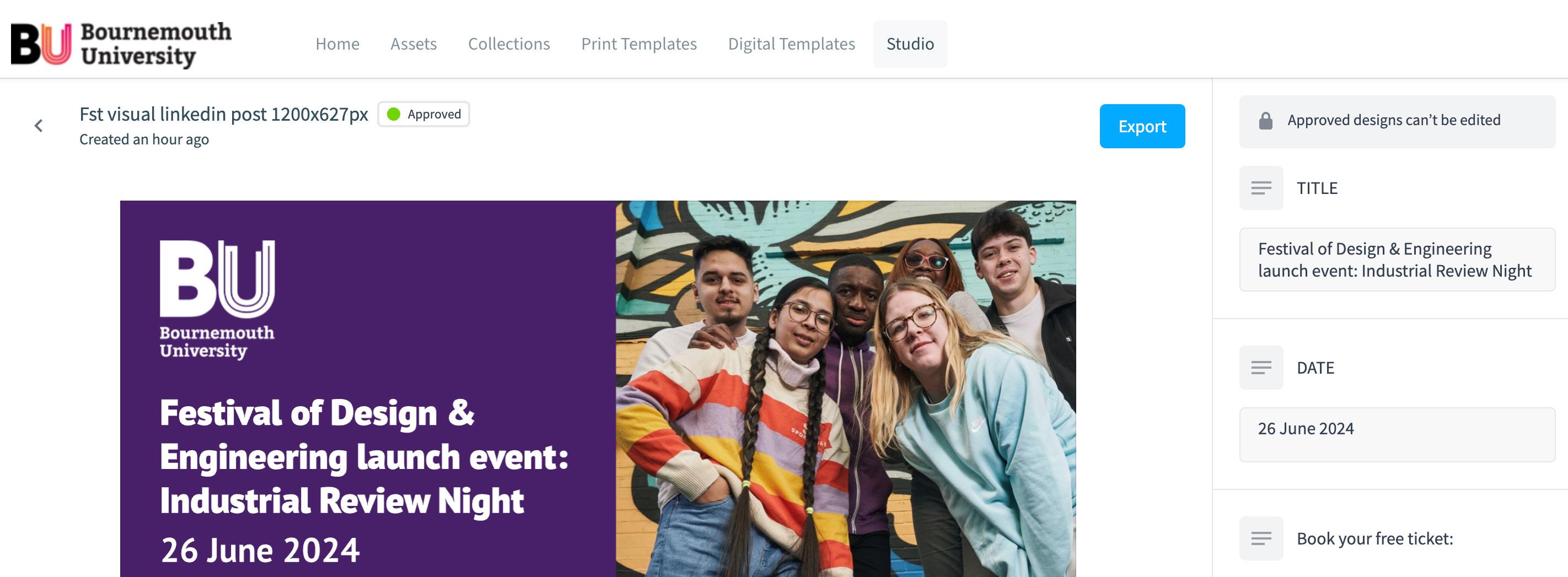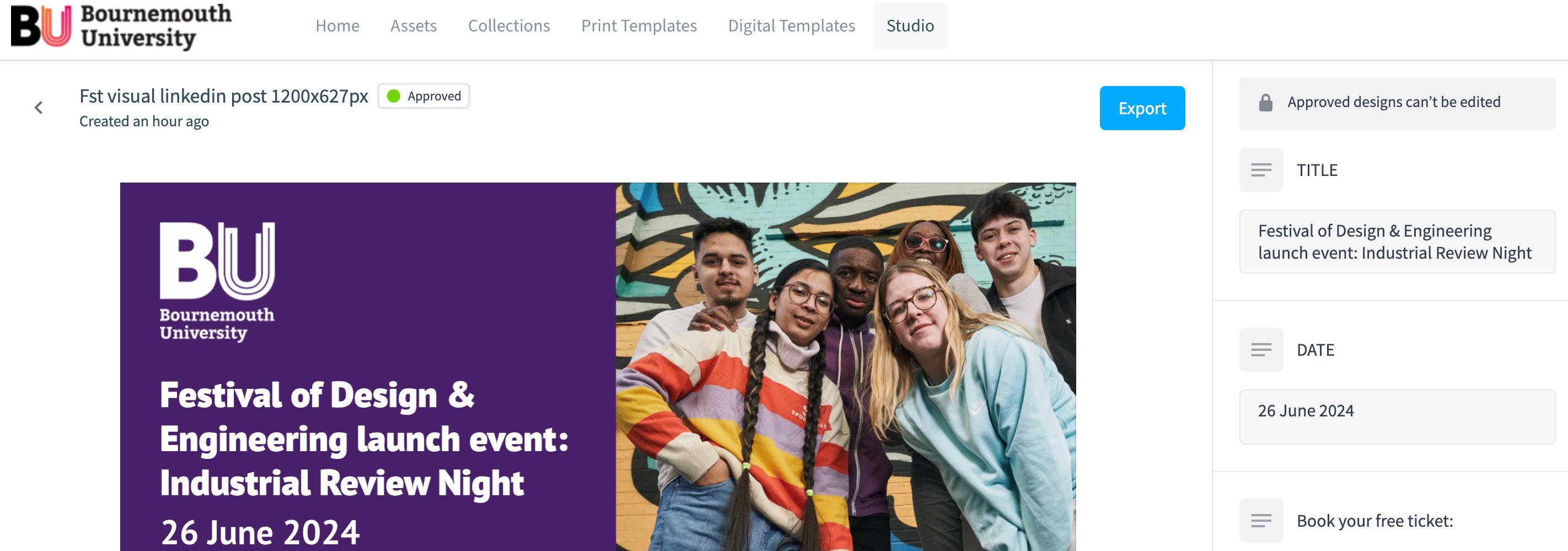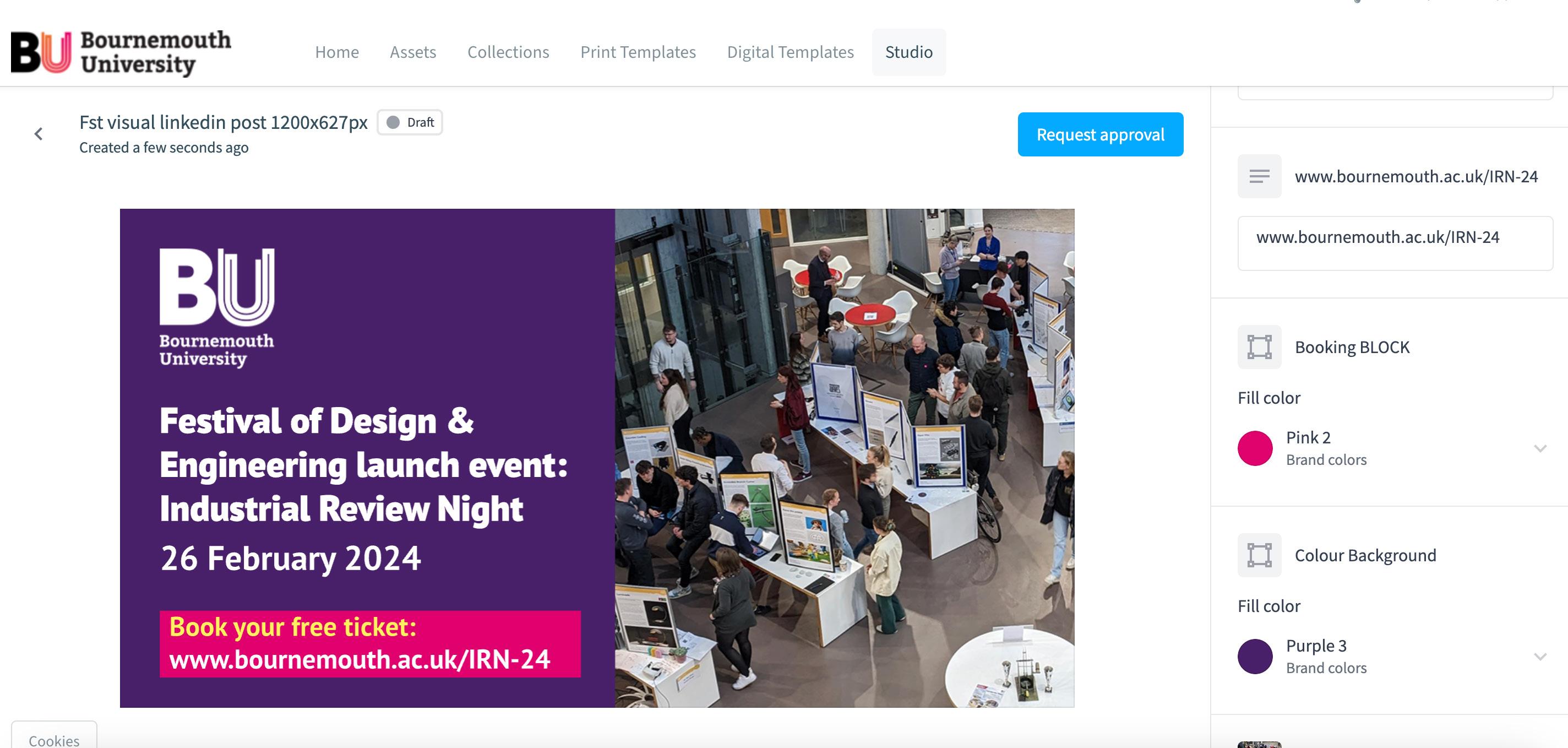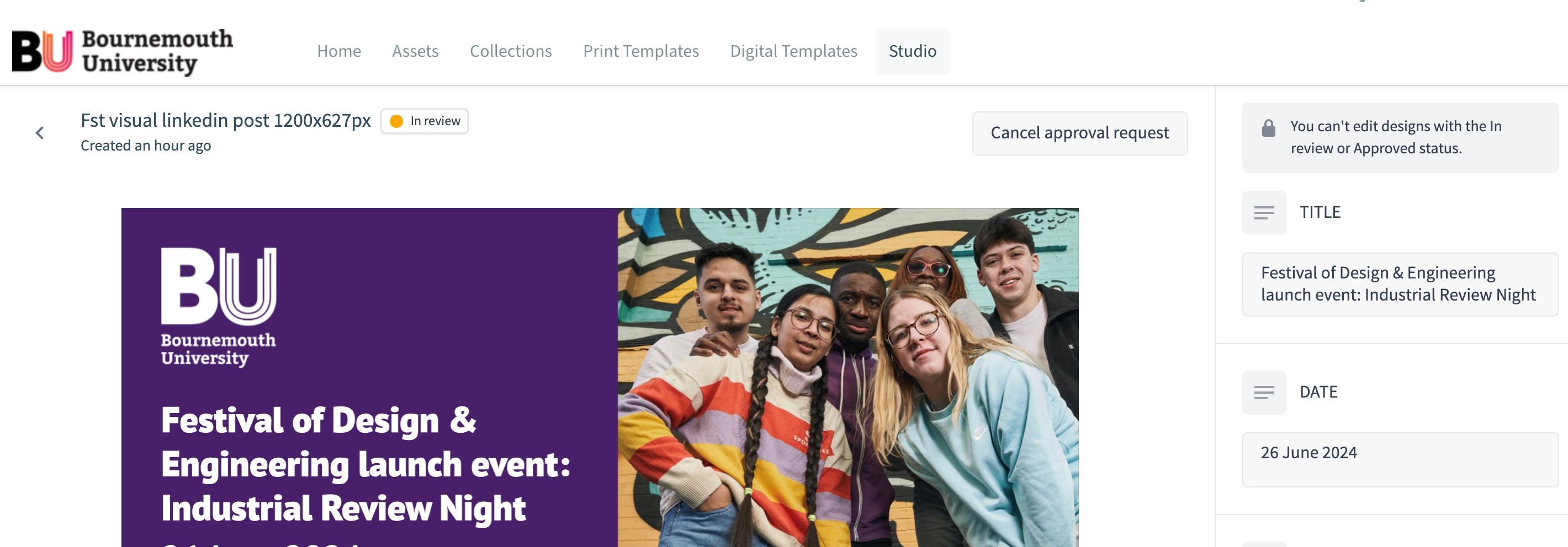 • You can fill in the fields in the template, updating them with new images and content to meet your needs. Your project will then be checked by the Design Team for consistency as a final check.